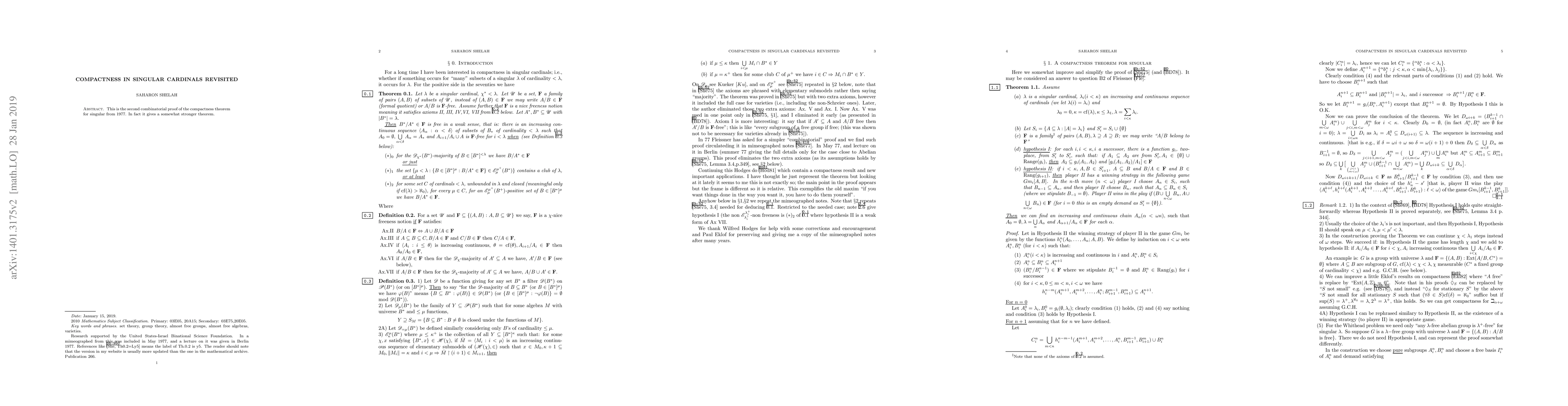 Summary: This paper presents a second combinatorial proof of the compactness theorem for singular cardinals, offering a stronger version of the original theorem from 1977. It revisits and refines the combinatorial techniques used in the proof.