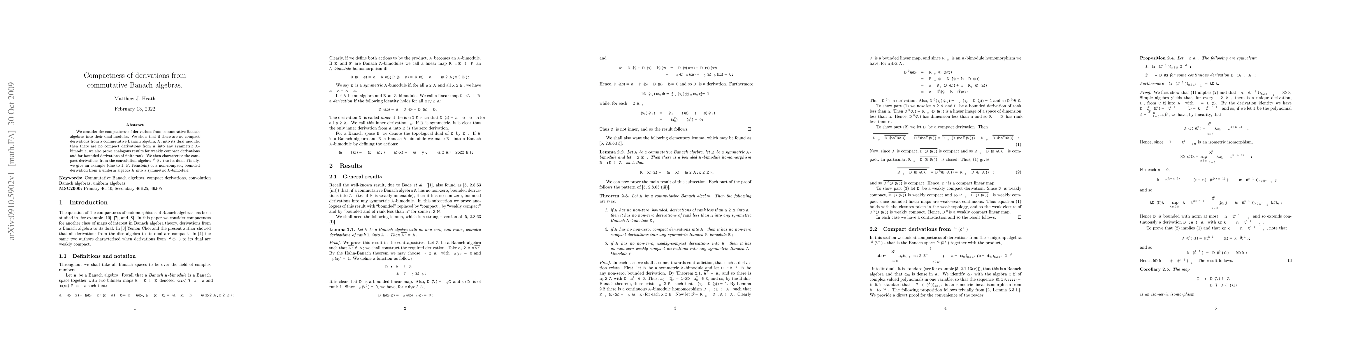 This paper investigates the compactness of derivations from commutative Banach algebras into their dual modules, proving that the absence of compact derivations into the dual implies the same for any symmetric $A$-bimodule. It also characterizes compact derivations in $\ell^1(\Z_+)$ and provides an example of a non-compact bounded derivation from a uniform algebra.