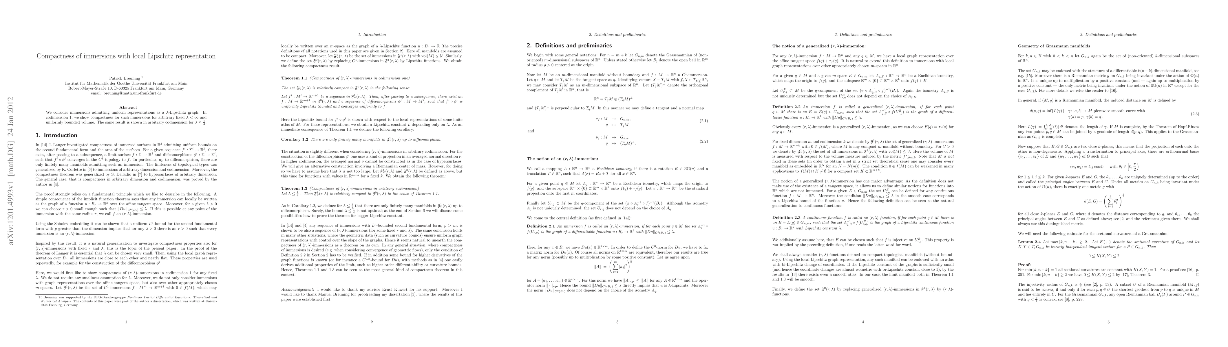 We consider immersions admitting uniform representations as an L-Lipschitz graph. In codimension 1, we show compactness for such immersions for arbitrary fixed finite L and uniformly bounded volume. The same result is shown in arbitrary codimension for L less than or equal to 1/4.