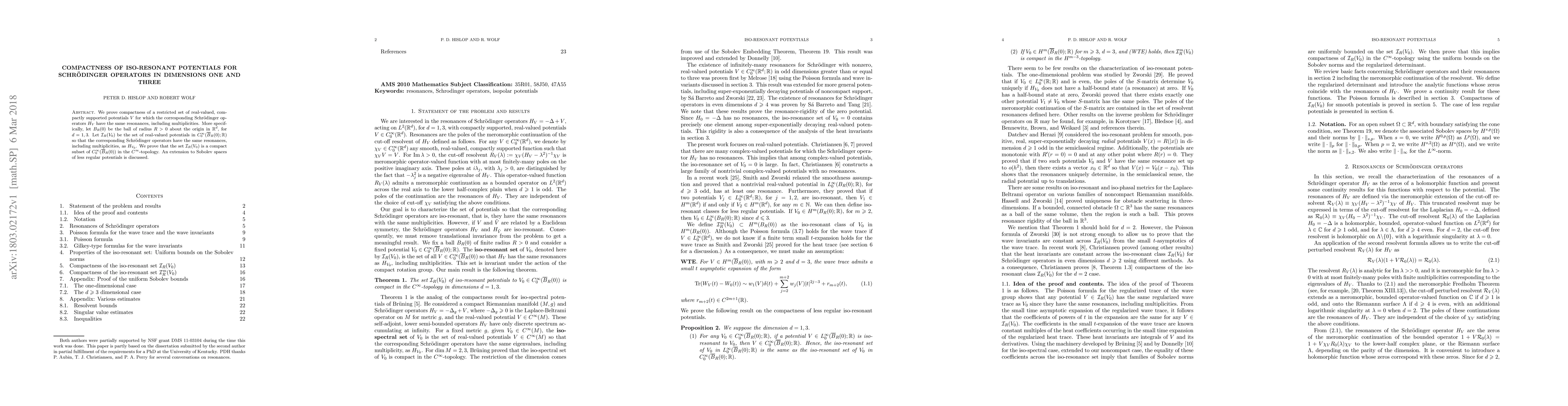 We prove compactness of a restricted set of real-valued, compactly supported potentials $V$ for which the corresponding Schr\"odinger operators $H_V$ have the same resonances, including multiplicities. More specifically, let $B_R(0)$ be the ball of radius $R > 0$ about the origin in $R^d$, for $d=1,3$. Let $\mathcal{I}_R (V_0)$ be the set of real-valued potentials in $C_0^\infty( \overline{B}_R(0); R)$ so that the corresponding Schr\"odinger operators have the same resonances, including multiplicities, as $H_{V_0}$. We prove that the set $\mathcal{I}_R (V_0)$ is a compact subset of $C_0^\infty (\overline{B}_R(0))$ in the $C^\infty$-topology. An extension to Sobolev spaces of less regular potentials is discussed.