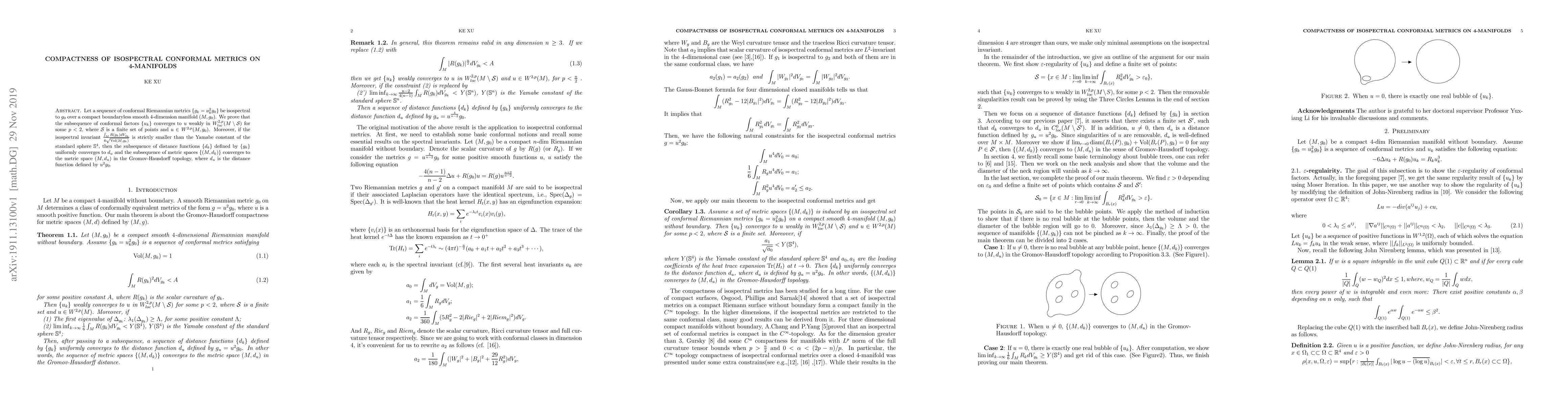 Researchers prove that a sequence of conformal metrics on a 4-manifold converges to a limit metric under certain conditions, allowing for the study of isospectral conformal metrics and their properties.