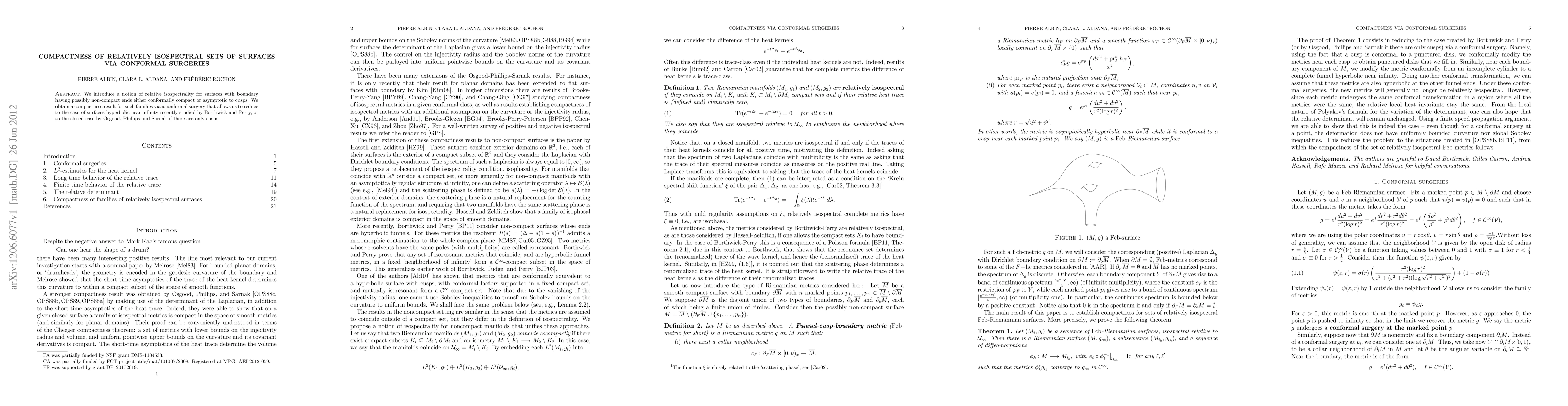 This paper introduces a new approach to studying relatively isospectral sets of surfaces via conformal surgeries, providing a compactness result for such families.
