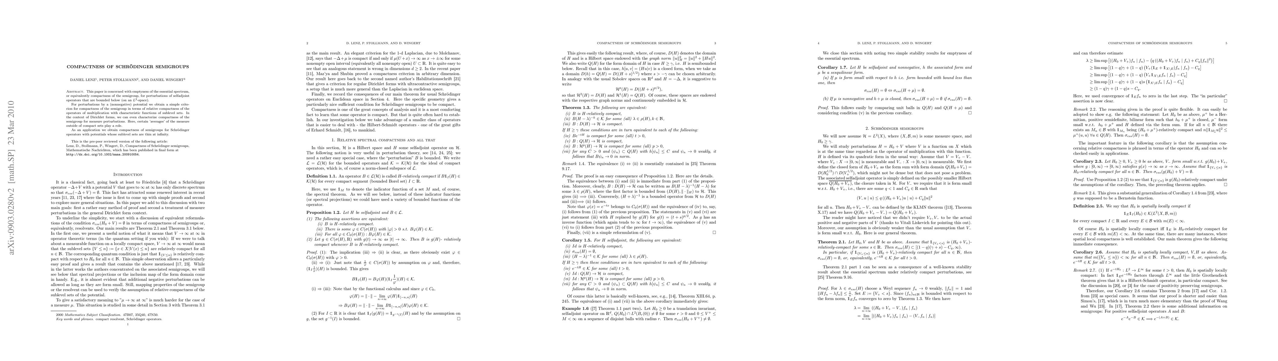 This research provides a criterion for compactness of Schrödinger semigroups, applicable to perturbations by nonnegative potentials and measure perturbations in Dirichlet forms. It characterizes compactness using relative compactness of operators and 'averages' of measures outside compact sets, particularly useful for thin sublevel sets at infinity.