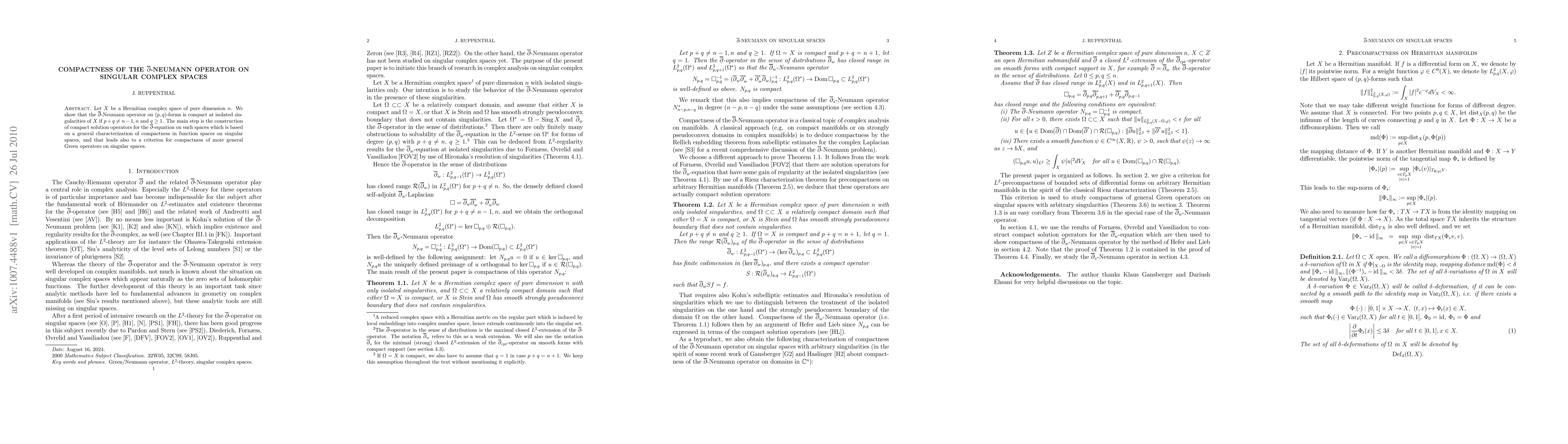 Let X be a Hermitian complex space of pure dimension n. We show that the d-bar-Neumann operator on (p,q)-forms is compact at isolated singularities of X if q>0 and p+q is not equal to n-1 or n. The main step is the construction of compact solution operators for the d-bar-equation on such spaces which is based on a general characterization of compactness in function spaces on singular spaces, and that leads also to a criterion for compactness of more general Green operators on singular spaces.