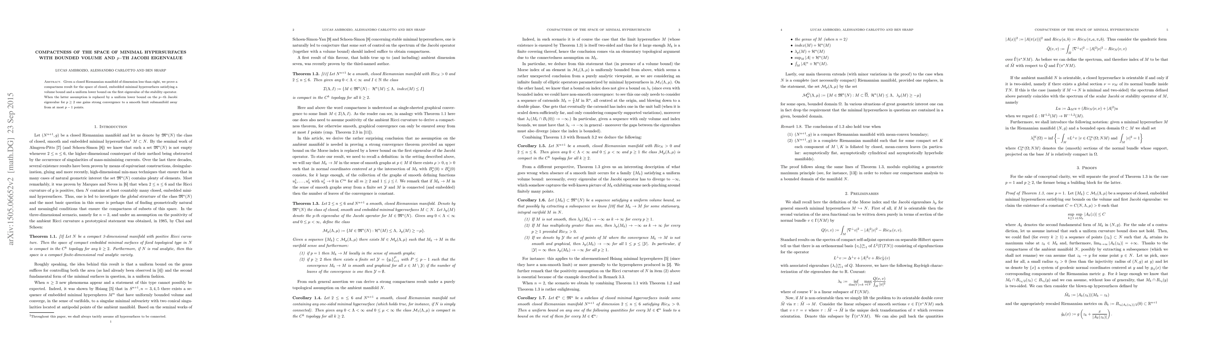 This paper proves compactness for minimal hypersurfaces in low-dimensional Riemannian manifolds under volume and stability constraints, and shows strong convergence to a smooth limit when the p-th Jacobi eigenvalue is bounded for p ≥ 2, with convergence away from at most p-1 points.