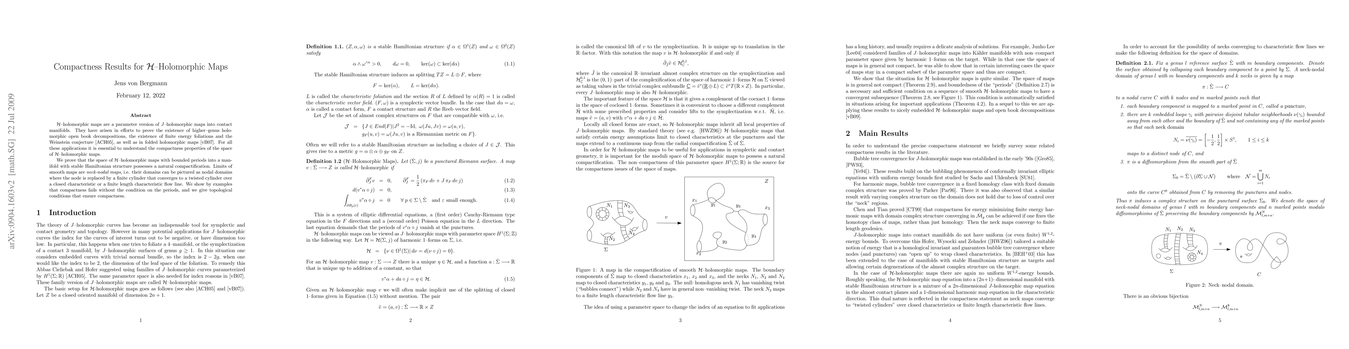 H-holomorphic maps are a parameter version of J-holomorphic maps into contact manifolds. They have arisen in efforts to prove the existence of higher--genus holomorphic open book decompositions and efforts to prove the existence of finite energy foliations and the Weinstein conjecture, as well as in folded holomorphic maps. For all these applications it is essential to understand the compactness properties of the space of H-holomorphic maps. We prove that the space of H-holomorphic maps with bounded periods into a manifold with stable Hamiltonian structure possesses a natural compactification. Limits of smooth maps are "neck-nodal maps", i.e. their domains can be pictured as nodal domains where the node is replaced by a finite cylinder that converges to a twisted cylinder over a closed characteristic or a finite length characteristic flow line. We show by examples that compactness fails without the condition on the periods, and we give topological conditions that ensure compactness.