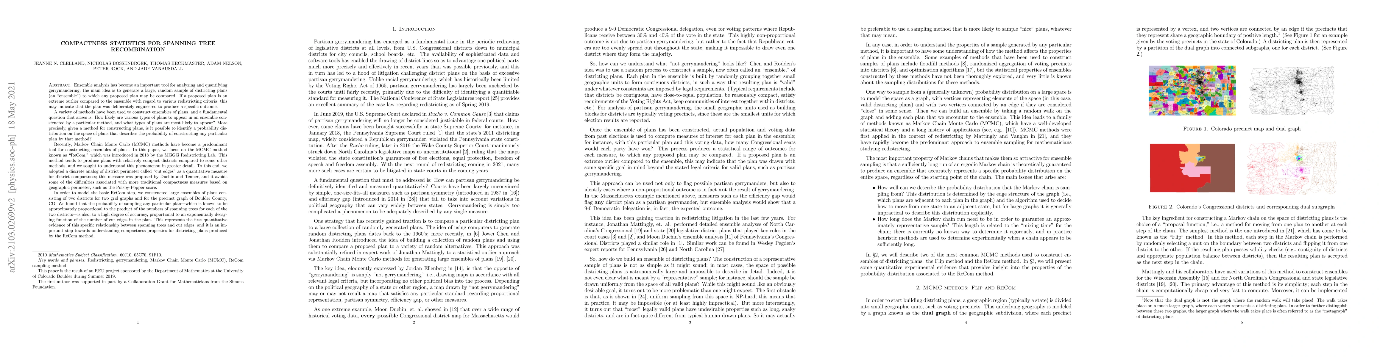 Ensemble analysis has become an important tool for quantifying gerrymandering; the main idea is to generate a large, random sample of districting plans (an "ensemble") to which any proposed plan may be compared. If a proposed plan is an extreme outlier compared to the ensemble with regard to various redistricting criteria, this may indicate that the plan was deliberately engineered to produce a specific outcome. Many methods have been used to construct ensembles, and a fundamental question that arises is: Given a method for constructing plans, can we identify a probability distribution on the space of plans that describes the probability of constructing any particular plan by that method? Recently, MCMC methods have become a predominant tool for constructing ensembles. Here we focus on the MCMC method known as "ReCom," which was introduced in 2018 by the MGGG Redistricting Lab. ReCom tends to produce plans with more compact districts than some other methods, and we sought to better understand this phenomenon. We adopted a discrete analog of district perimeter called "cut edges" as a quantitative measure for district compactness; this measure was proposed by Duchin and Tenner, and it avoids some of the difficulties associated with compactness measures based on geographic perimeter, such as the Polsby-Popper score. To model the basic ReCom step, we constructed ensembles of 2-district plans for two grid graphs and for the precinct graph of Boulder County, CO. We found that the probability of sampling any particular plan -- which is roughly proportional to the product of the numbers of spanning trees for each of the two districts -- is also approximately proportional to an exponentially decaying function of the number of cut edges in the plan. This is an important step towards understanding compactness properties for districting plans produced by the ReCom method.