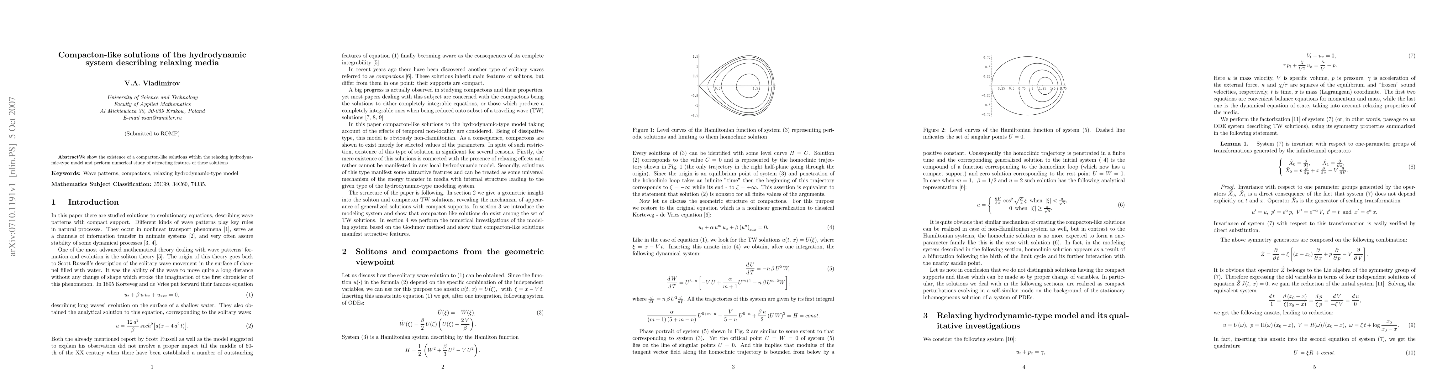Summary: This paper demonstrates the existence of compacton-like solutions in a hydrodynamic-type model for relaxing media and conducts a numerical study to explore the attractive characteristics of these solutions.