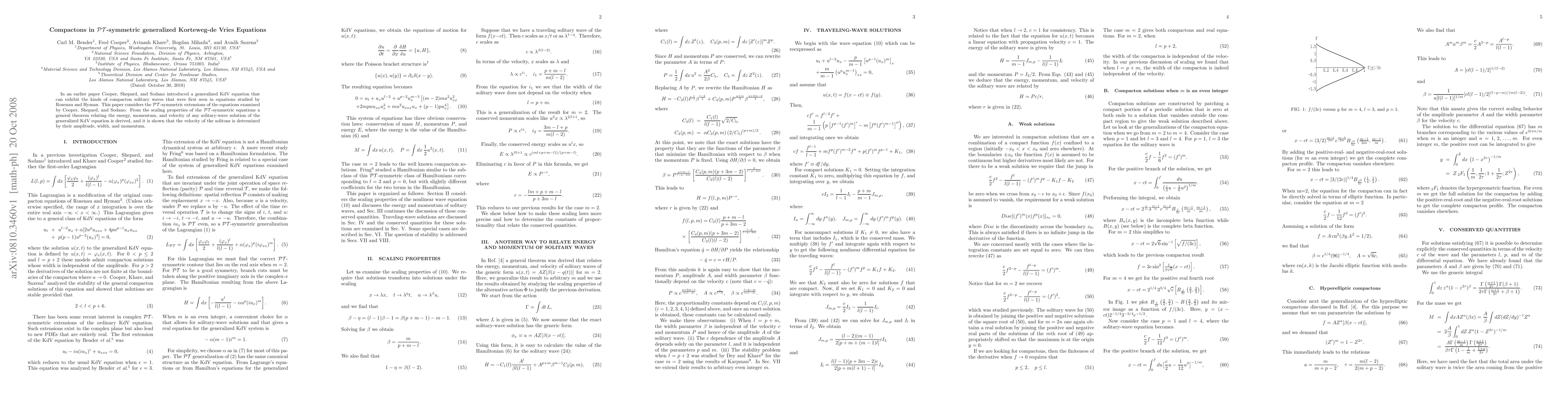 In an earlier paper Cooper, Shepard, and Sodano introduced a generalized KdV equation that can exhibit the kinds of compacton solitary waves that were first seen in equations studied by Rosenau and Hyman. This paper considers the PT-symmetric extensions of the equations examined by Cooper, Shepard, and Sodano. From the scaling properties of the PT-symmetric equations a general theorem relating the energy, momentum, and velocity of any solitary-wave solution of the generalized KdV equation is derived, and it is shown that the velocity of the solitons is determined by their amplitude, width, and momentum.