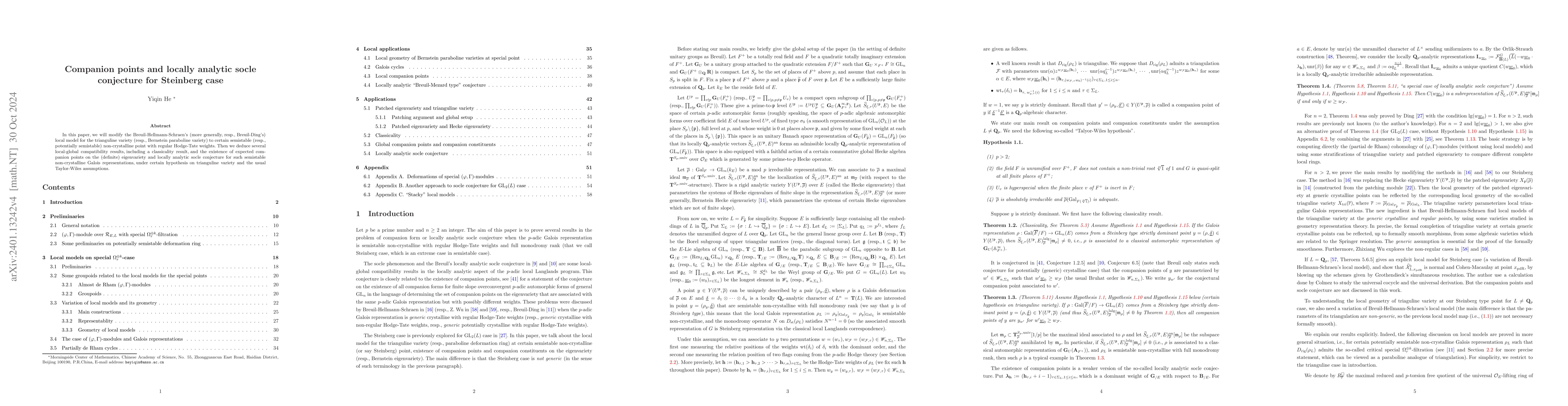 This paper modifies Breuil-Hellmann-Schraen's local model for trianguline varieties to develop results on companion points and verify the locally analytic socle conjecture for the Steinberg case, achieving local-global compatibility and classicality under wild hypotheses and Taylor-Wiles assumptions.
