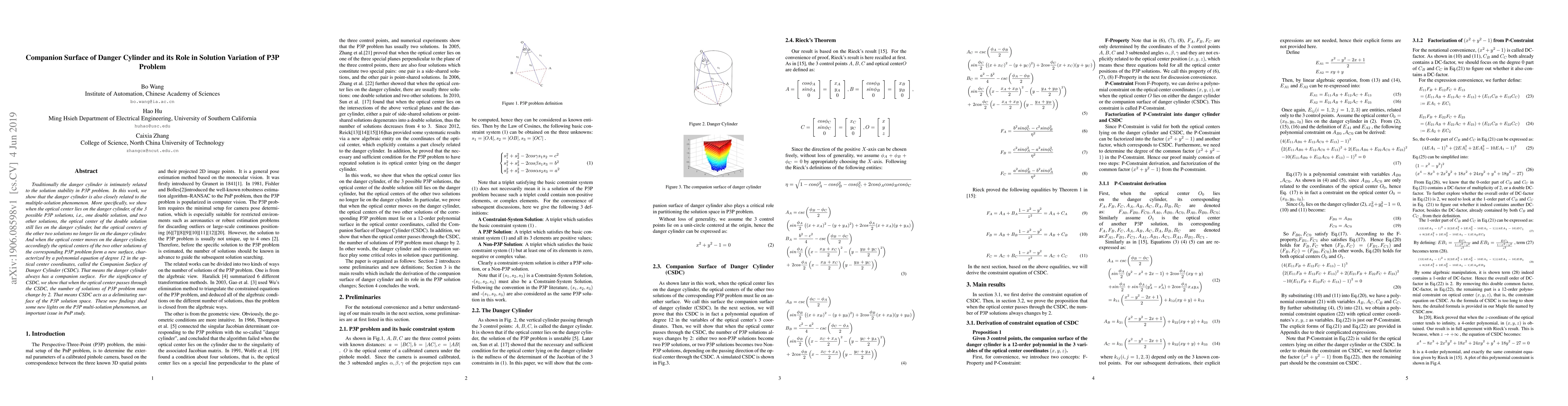 This research reveals that the danger cylinder in the P3P problem not only impacts solution stability but also dictates the occurrence of multiple solutions. A new 'Companion Surface of Danger Cylinder' (CSDC) is identified, which, when crossed by the optical center, causes the P3P problem's solution count to change by two, effectively delimiting the solution space. This finding offers fresh insights into the P3P multi-solution issue.