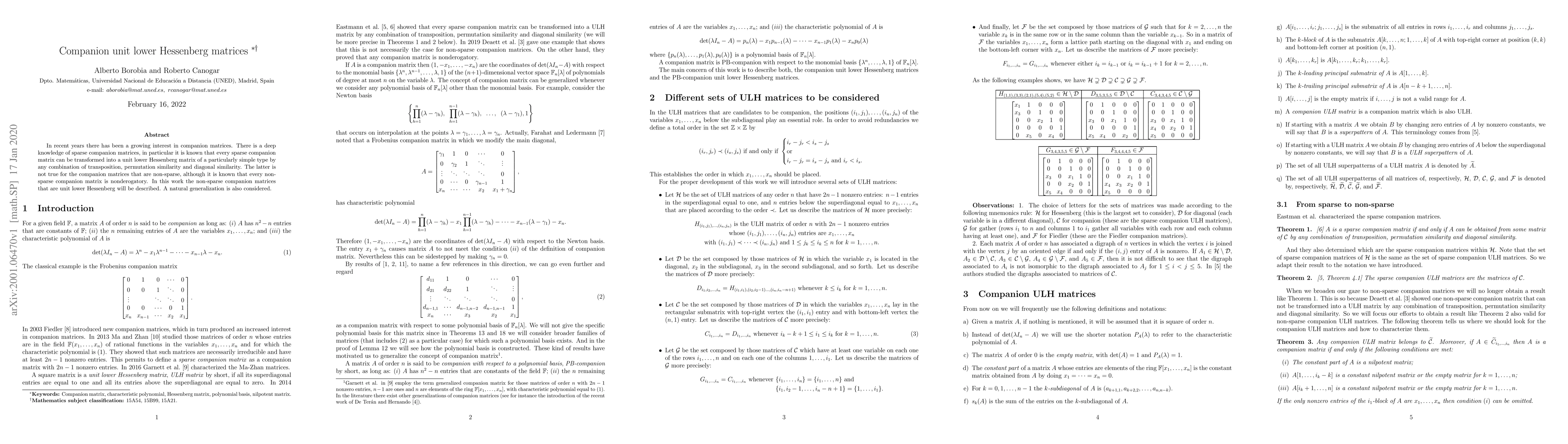 This paper explores the transformation of non-sparse companion matrices into unit lower Hessenberg form, contrasting with the known transformation methods for sparse companion matrices. It also discusses a natural generalization of these matrices.