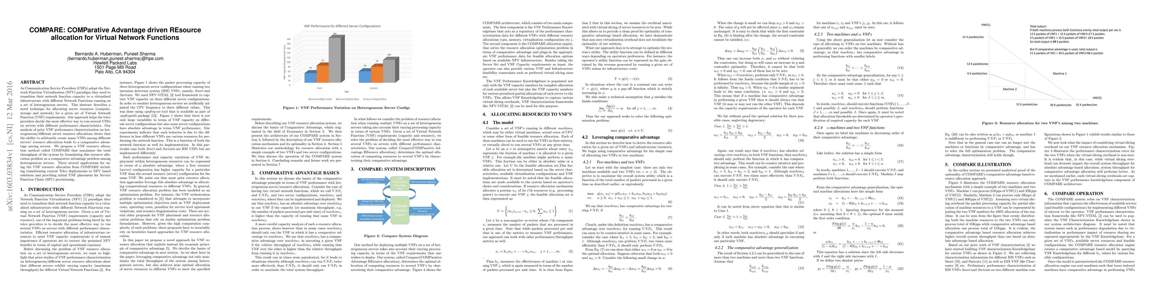 This paper introduces COMPARE, a novel technique for allocating resources to Virtual Network Functions (VNFs) on heterogeneous servers, aiming to maximize system throughput by leveraging comparative advantage. The method facilitates efficient transition to Network Function Virtualization (NFV) and supports initial VNF placement for Service Function Chain provisioning.