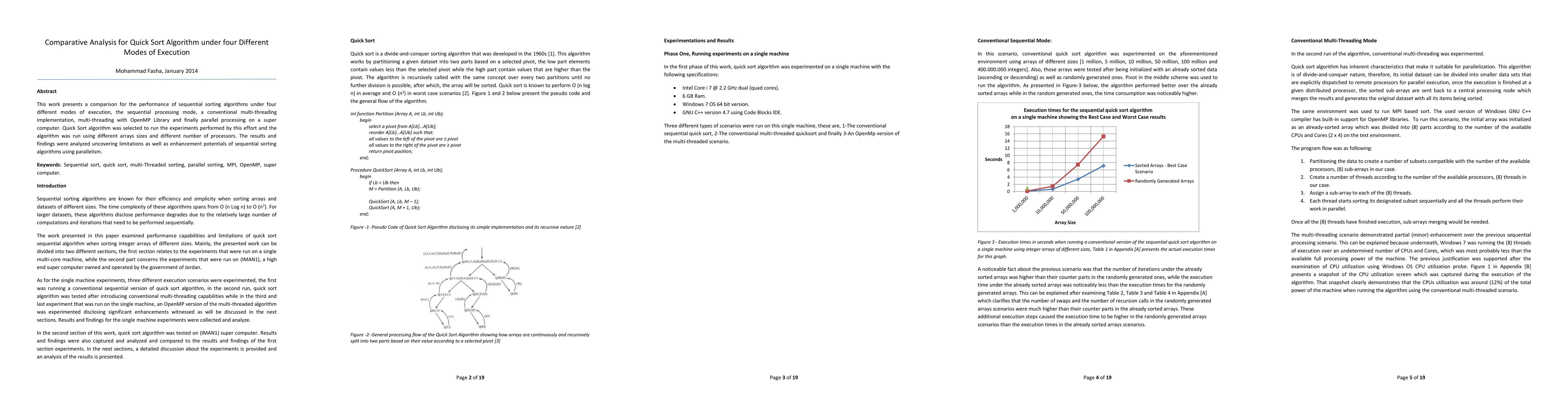 This research paper compares Quick Sort algorithm's performance under four execution modes: sequential, multi-threading, OpenMP Library, and parallel processing on a supercomputer. The results highlight limitations and enhancement potentials of sequential sorting algorithms using parallelism.
