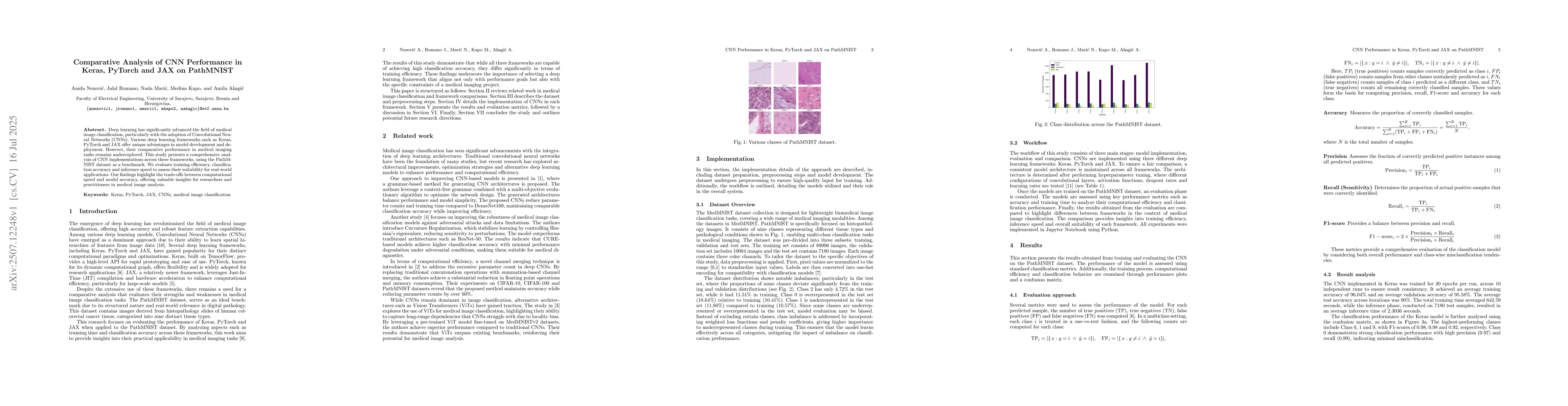 Deep learning has significantly advanced the field of medical image classification, particularly with the adoption of Convolutional Neural Networks (CNNs). Various deep learning frameworks such as Keras, PyTorch and JAX offer unique advantages in model development and deployment. However, their comparative performance in medical imaging tasks remains underexplored. This study presents a comprehensive analysis of CNN implementations across these frameworks, using the PathMNIST dataset as a benchmark. We evaluate training efficiency, classification accuracy and inference speed to assess their suitability for real-world applications. Our findings highlight the trade-offs between computational speed and model accuracy, offering valuable insights for researchers and practitioners in medical image analysis.