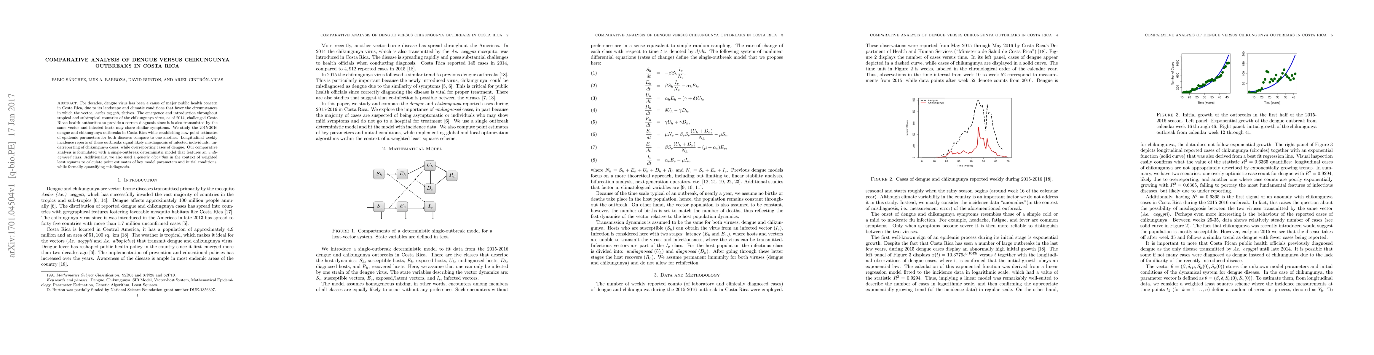 This paper compares the 2015-2016 dengue and chikungunya outbreaks in Costa Rica, highlighting misdiagnosis issues due to similar transmission vectors and symptoms. The study uses a deterministic model and genetic algorithm to estimate epidemic parameters and quantify misdiagnosis rates.