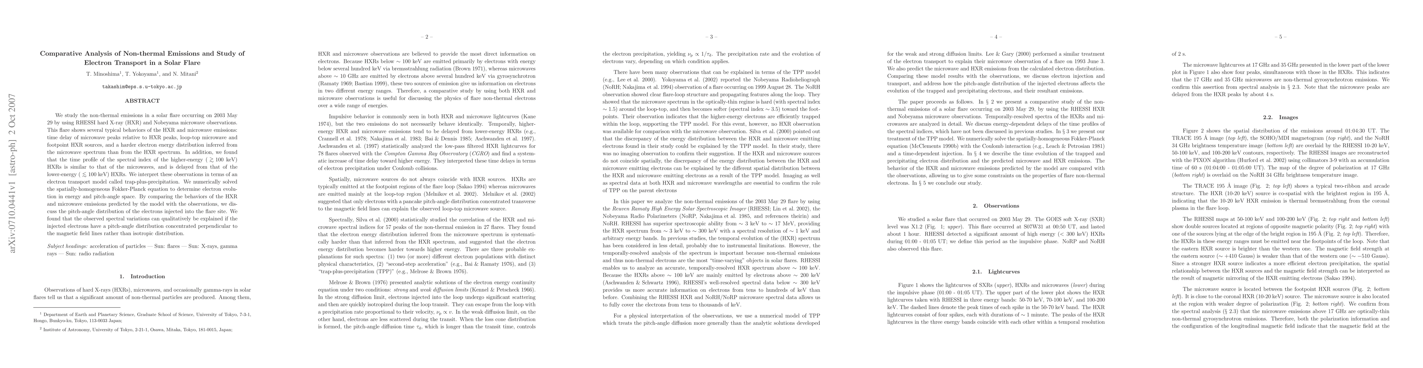 We study the non-thermal emissions in a solar flare occurring on 2003 May 29 by using RHESSI hard X-ray (HXR) and Nobeyama microwave observations. This flare shows several typical behaviors of the HXR and microwave emissions: time delay of microwave peaks relative to HXR peaks, loop-top microwave and footpoint HXR sources, and a harder electron energy distribution inferred from the microwave spectrum than from the HXR spectrum. In addition, we found that the time profile of the spectral index of the higher-energy ($\gsim 100$ keV) HXRs is similar to that of the microwaves, and is delayed from that of the lower-energy ($\lsim 100$ keV) HXRs. We interpret these observations in terms of an electron transport model called {\TPP}. We numerically solved the spatially-homogeneous {\FP} equation to determine electron evolution in energy and pitch-angle space. By comparing the behaviors of the HXR and microwave emissions predicted by the model with the observations, we discuss the pitch-angle distribution of the electrons injected into the flare site. We found that the observed spectral variations can qualitatively be explained if the injected electrons have a pitch-angle distribution concentrated perpendicular to the magnetic field lines rather than isotropic distribution.