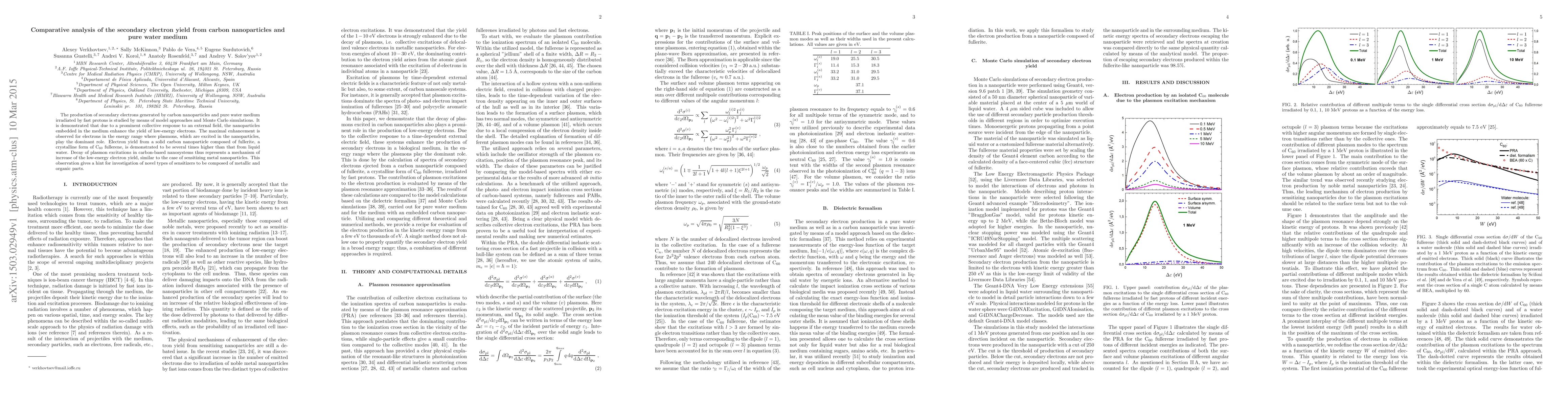 This study compares secondary electron yields from carbon nanoparticles and pure water irradiated by fast protons, revealing that nanoparticles significantly enhance low-energy electron production due to plasmon excitations. The electron yield from solid carbon nanoparticles is several times higher than that from liquid water, suggesting potential for novel sensitizers combining metallic and organic components.