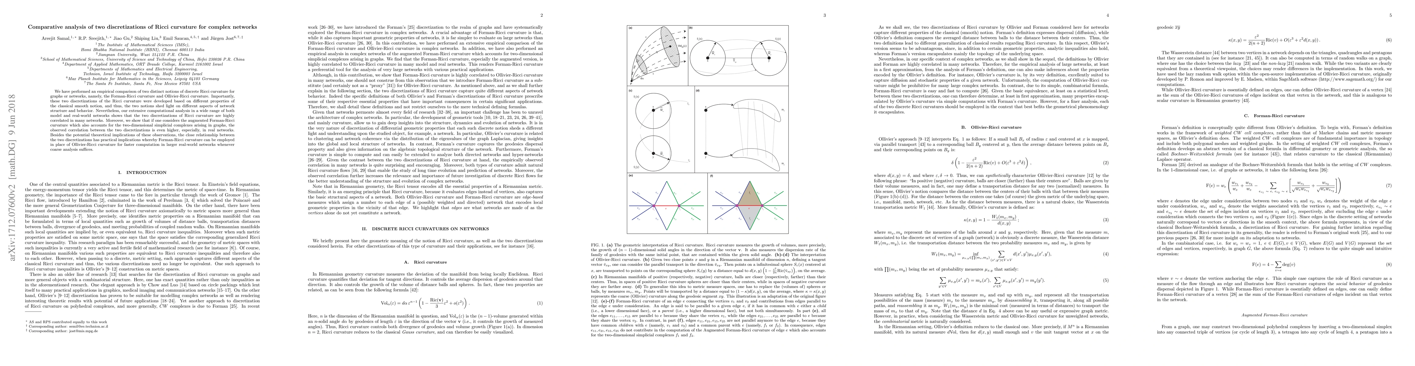 The research performed a comparative analysis of two discretizations of Ricci curvature, namely, Forman-Ricci curvature and Ollivier-Ricci curvature, in various model and real-world networks.