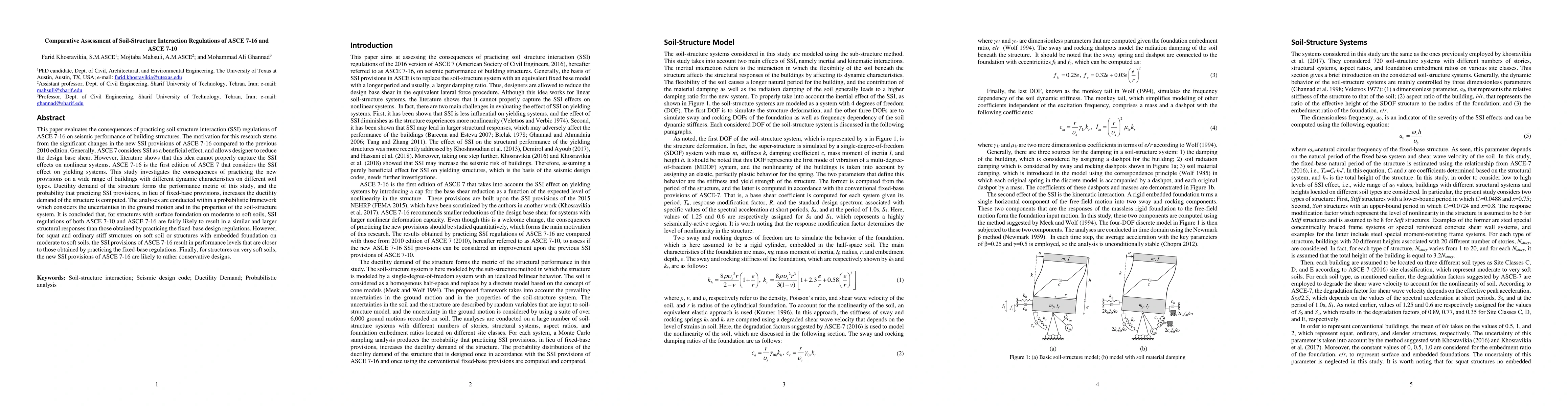 This paper evaluates the consequences of practicing soil structure interaction (SSI) regulations of ASCE 7-16 on seismic performance of building structures. The motivation for this research stems from the significant changes in the new SSI provisions of ASCE 7-16 compared to the previous 2010 edition. Generally, ASCE 7 considers SSI as a beneficial effect, and allows designer to reduce the design base shear. However, literature shows that this idea cannot properly capture the SSI effects on nonlinear systems. ASCE 7-16 is the first edition of ASCE 7 that considers the SSI effect on yielding systems. This study investigates the consequences of practicing the new provisions on a wide range of buildings with different dynamic characteristics on different soil types. Ductility demand of the structure forms the performance metric of this study, and the probability that practicing SSI provisions, in lieu of fixed-base provisions, increases the ductility demand of the structure is computed. The analyses are conducted within a probabilistic framework which considers the uncertainties in the ground motion and in the properties of the soil-structure system. It is concluded that, for structures with surface foundation on moderate to soft soils, SSI regulations of both ASCE 7-10 and ASCE 7-16 are fairly likely to result in a similar and larger structural responses than those obtained by practicing the fixed-base design regulations. However, for squat and ordinary stiff structures on soft soil or structures with embedded foundation on moderate to soft soils, the SSI provisions of ASCE 7-16 result in performance levels that are closer to those obtained by practicing the fixed-base regulations. Finally, for structures on very soft soils, the new SSI provisions of ASCE 7-16 are likely to rather conservative designs.