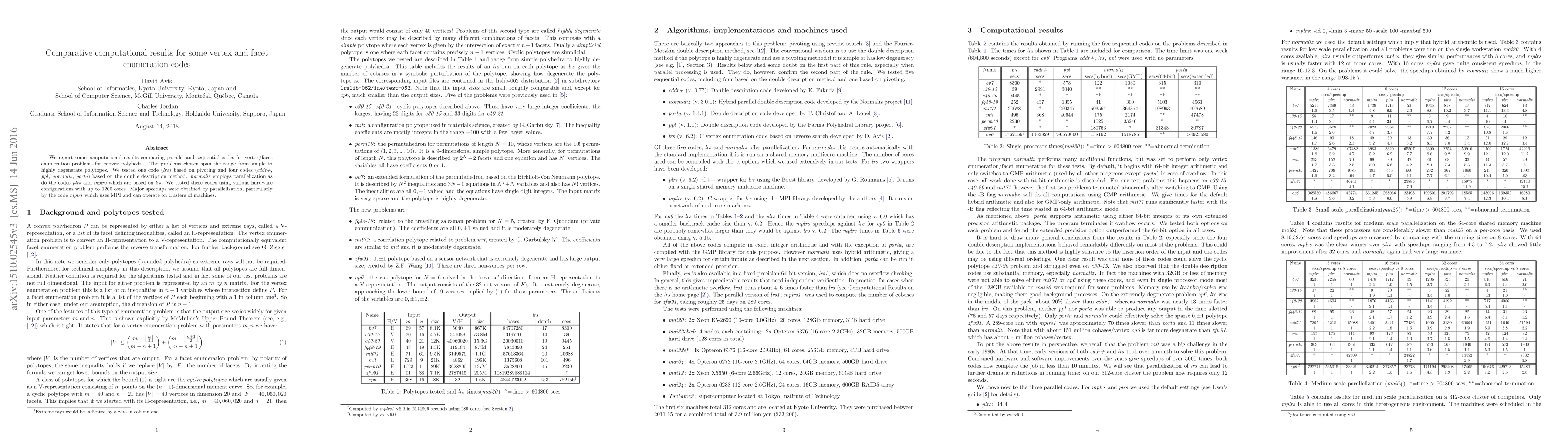Researchers compared parallel and sequential codes for solving vertex and facet enumeration problems on convex polyhedra, achieving significant speedups with parallelization, particularly with code mplrs that uses MPI and clusters of machines.