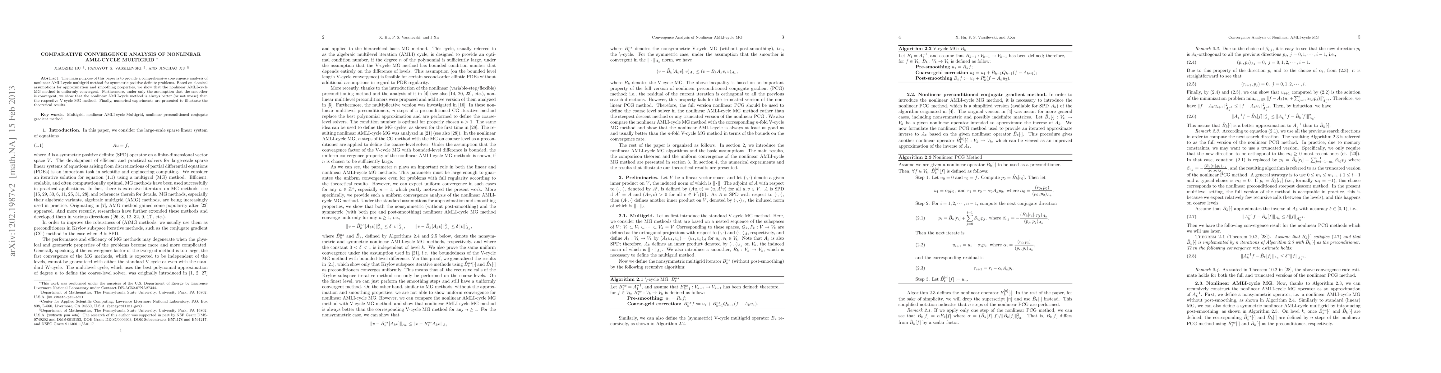This paper analyzes the convergence of a nonlinear multigrid method for solving symmetric positive definite problems, showing it is uniformly convergent with certain assumptions, and outperforms its V-cycle counterpart under those conditions.