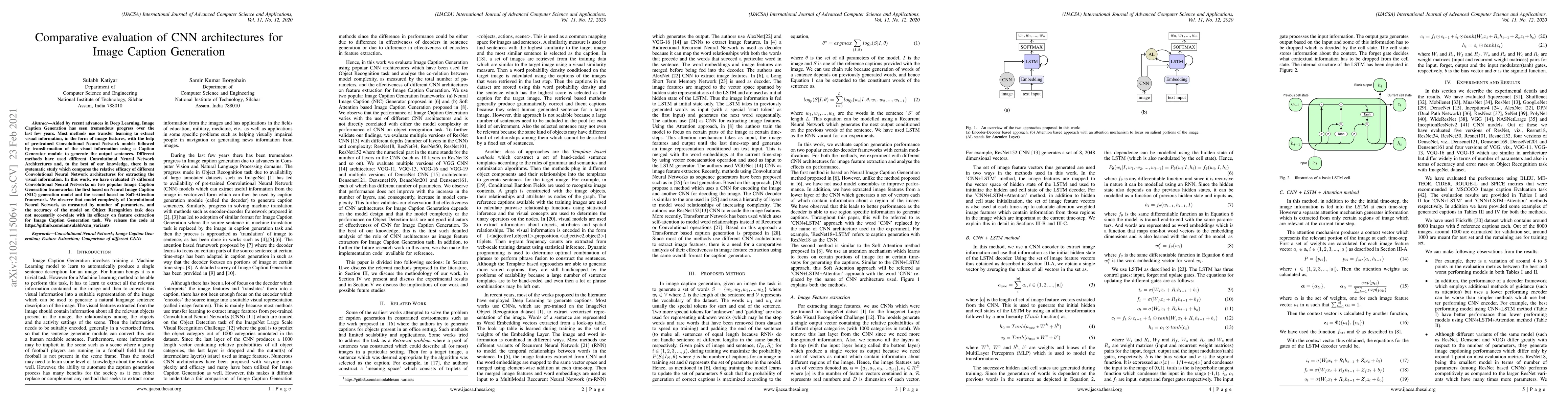 This paper evaluates 17 different Convolutional Neural Network architectures for their efficacy in image caption generation, comparing their performance on two popular frameworks. The study finds that model complexity and accuracy on object recognition do not necessarily correlate with effectiveness in image feature extraction for caption generation.