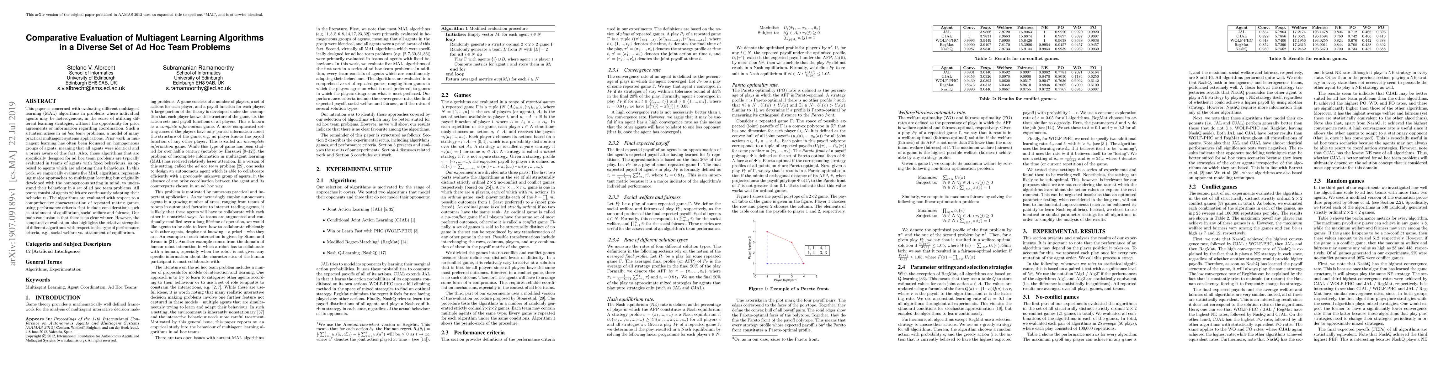 This paper evaluates five multiagent learning algorithms in ad hoc team problems, where agents adapt their behaviours without prior coordination. The findings reveal no single best algorithm but highlight the relative strengths of different algorithms based on performance criteria like social welfare and equilibrium attainment.