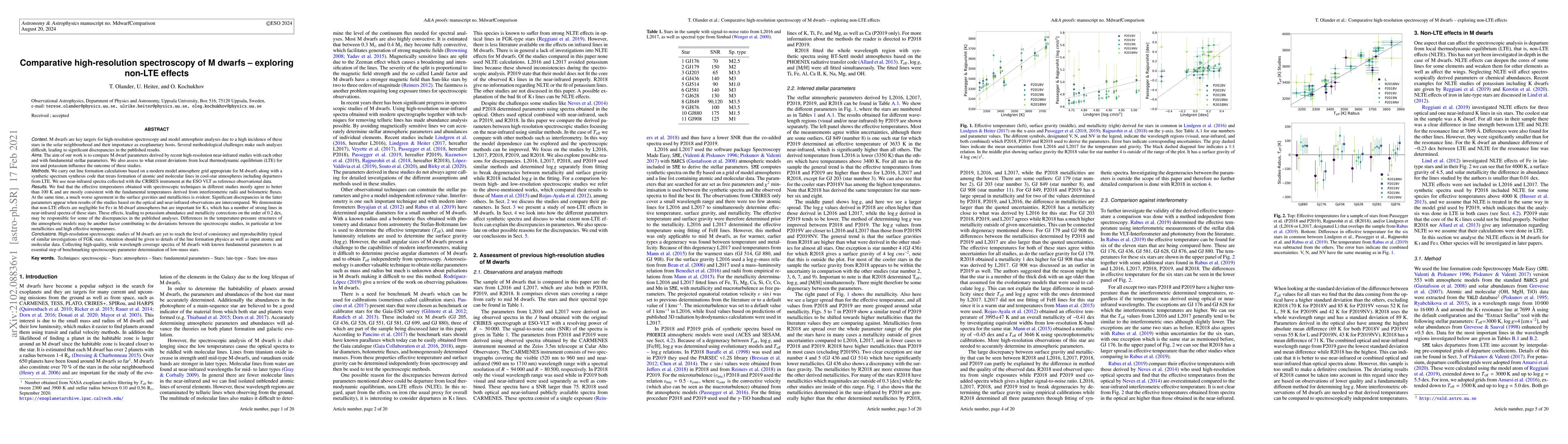A study compares high-resolution spectroscopy of M dwarfs to explore non-LTE effects, finding that deviations from local thermodynamic equilibrium affect K abundance and metallicity corrections, contributing to discrepancies in published analyses.