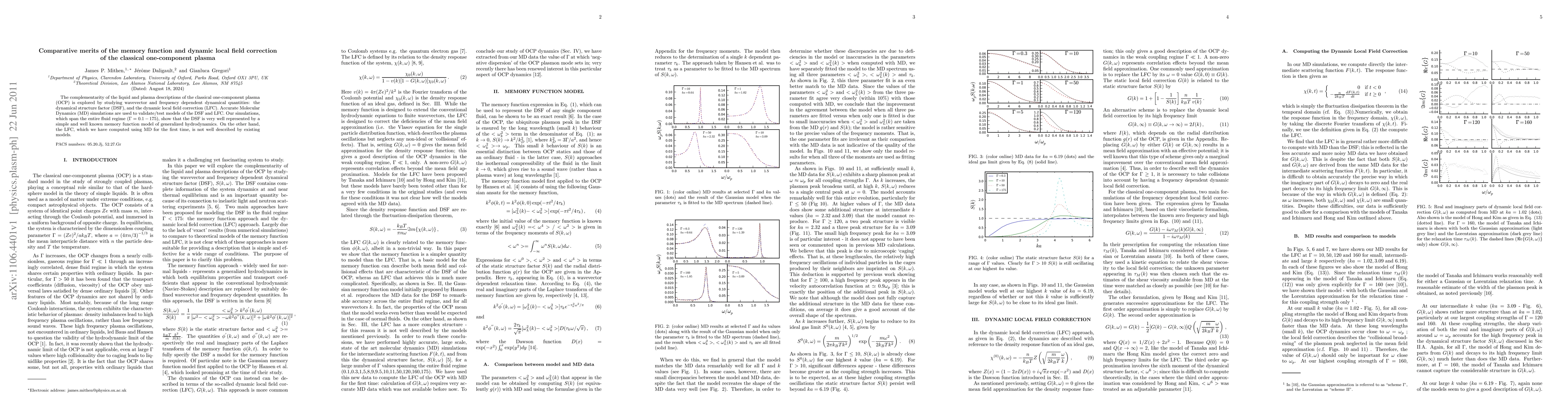 Researchers used molecular dynamics simulations to compare two models of a one-component plasma: a memory function model for the dynamical structure factor that accurately represents the fluid regime, and a dynamic local field correction model that was not well described by existing theories.