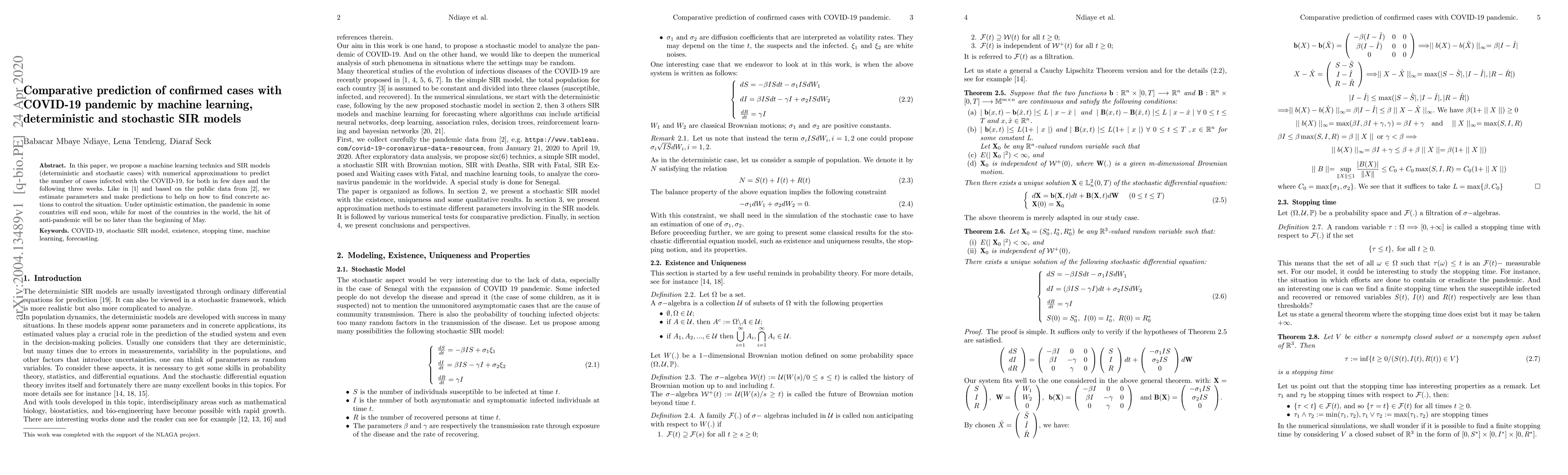 This paper compares machine learning techniques and SIR models (deterministic and stochastic) to predict COVID-19 confirmed cases, aiming to inform control strategies. Optimistic predictions suggest some countries may see the end of the pandemic soon, while others may face significant impacts until early May.