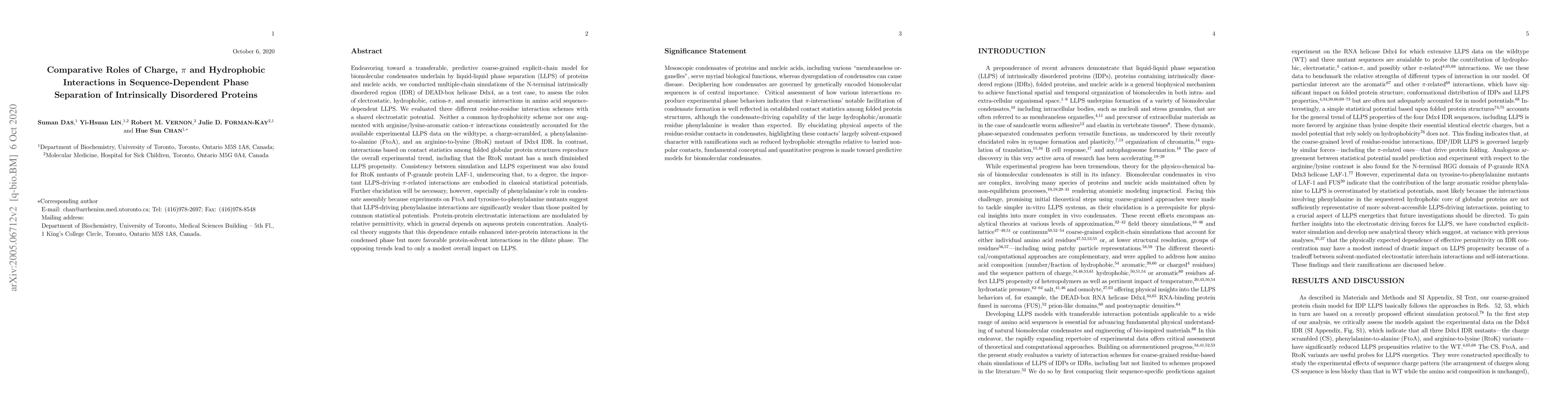 Research found that charge, pi, and hydrophobic interactions in intrinsically disordered proteins play a role in phase separation, but common models may not accurately predict this process. Interactions based on contact statistics among folded protein structures were more consistent with experimental data.