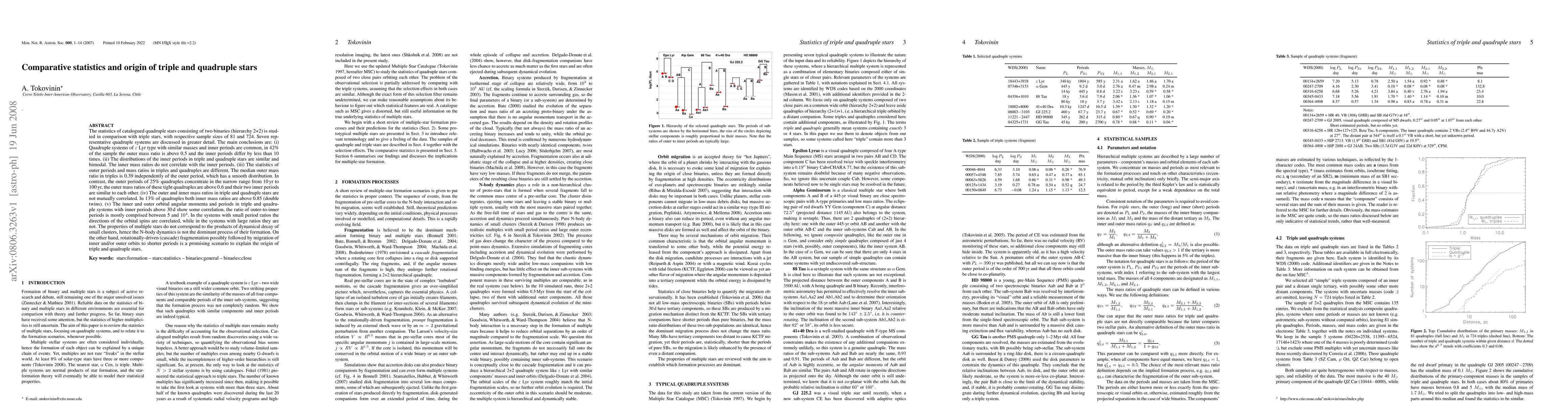 This paper compares the statistical properties of catalogued triple and quadruple star systems, finding that their formation likely involves rotationally-driven fragmentation rather than dynamical decay of small clusters. Key results include the commonality of Epsilon Lyr-type quadruple systems and differences in the distributions of outer periods and mass ratios between triple and quadruple stars.
