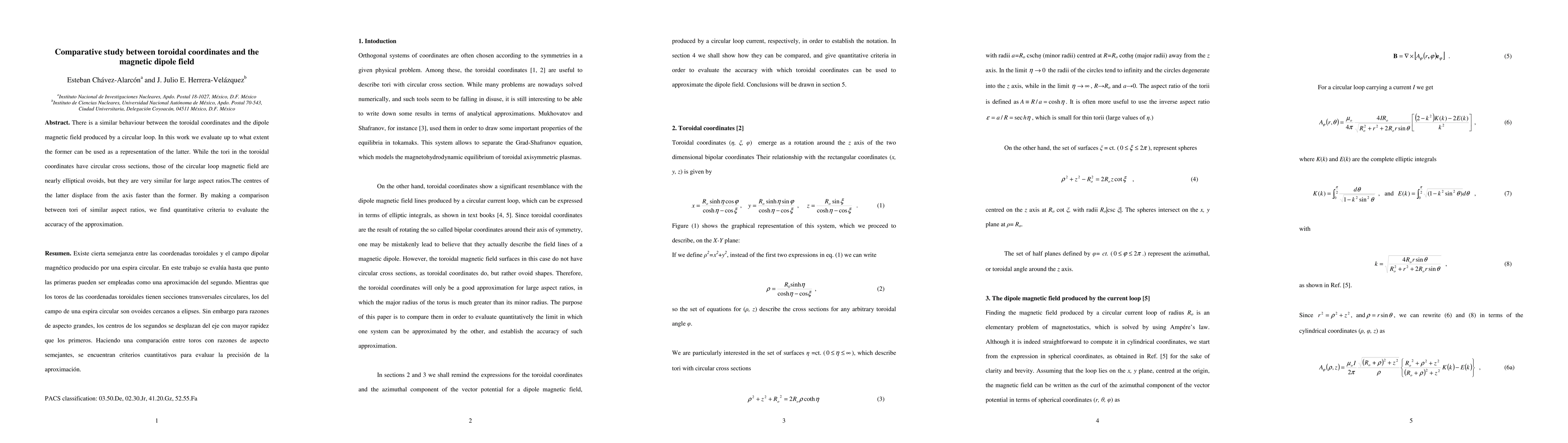 There is a similar behaviour between the toroidal coordinates and the dipole magnetic field produced by a circular loop. In this work we evaluate up to what extent the former can be used as a representation of the latter. While the tori in the toroidal coordinates have circular cross sections, those of the circular loop magnetic field are nearly elliptical ovoids, but they are very similar for large aspect ratios.The centres of the latter displace from the axis faster than the former. By making a comparison between tori of similar aspect ratios, we find quantitative criteria to evaluate the accuracy of the approximation.