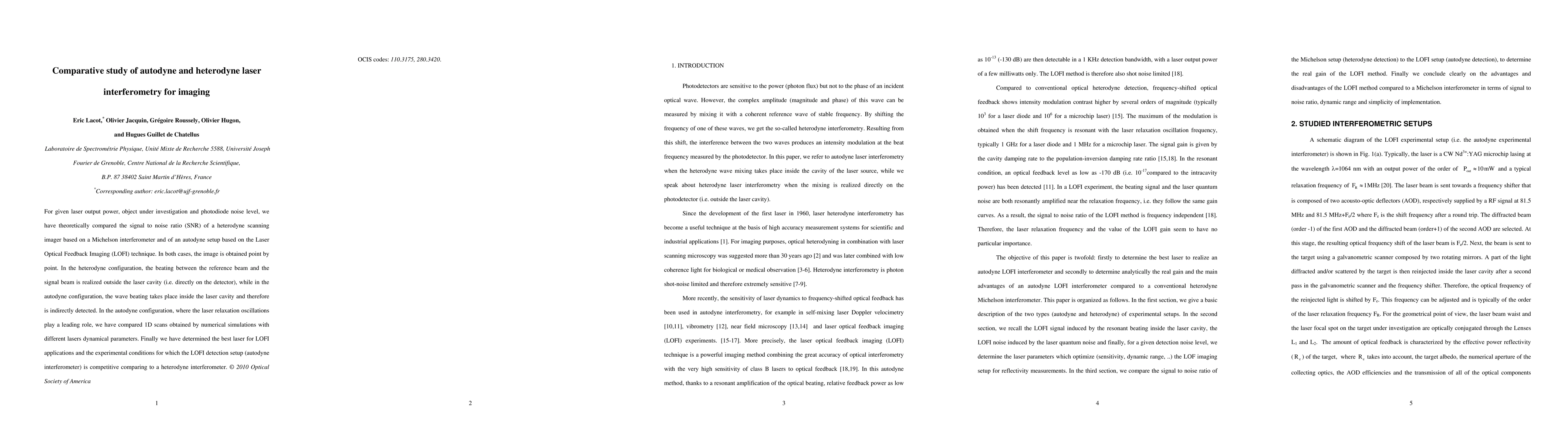 This paper compares the signal-to-noise ratio (SNR) of heterodyne and autodyne laser interferometry for imaging, finding that the autodyne setup, based on Laser Optical Feedback Imaging (LOFI), can be competitive with heterodyne interferometry under certain conditions. The study identifies the optimal laser parameters for LOFI and determines scenarios where it outperforms heterodyne methods.