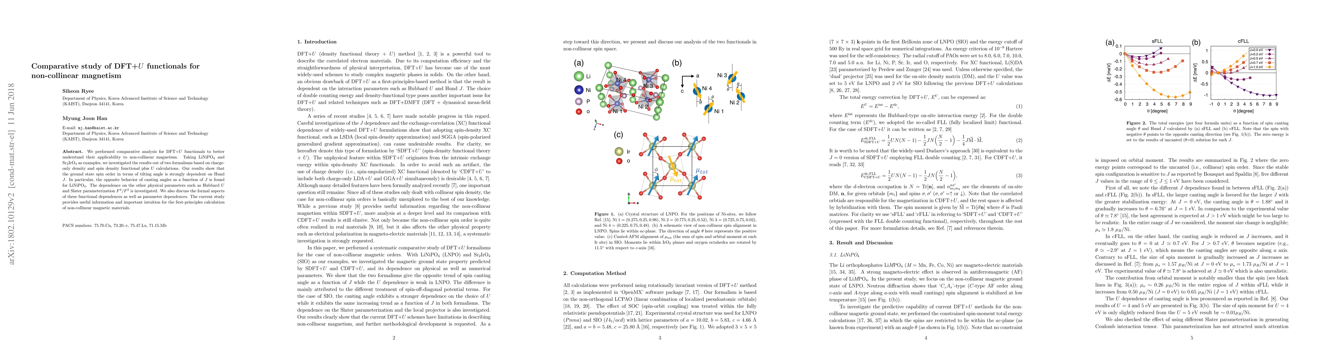 Researchers compared different functionals for predicting non-collinear magnetism in materials, finding that spin order is heavily influenced by Hund J and Hubbard U parameters.