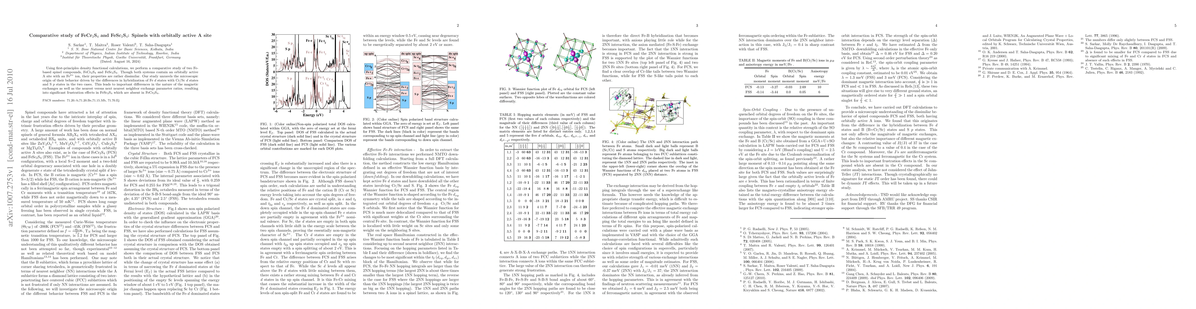 This study compares FeCr2S4 and FeSc2S4 spinel compounds using density functional theory, revealing that despite both having an orbitally active Fe2+ ion, their properties differ due to varying hybridization of Fe d states with Cr/Sc d states and S p states, leading to distinct magnetic exchange behaviors and frustration effects in FeSc2S4.
