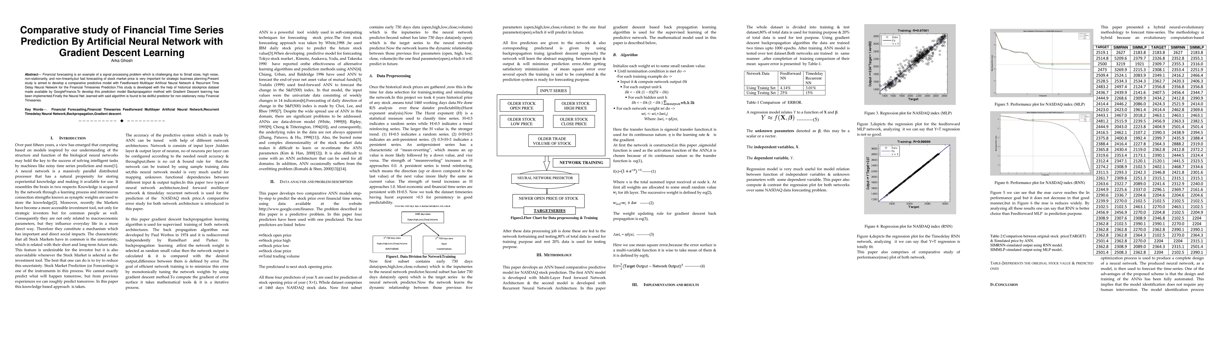 Financial forecasting is an example of a signal processing problem which is challenging due to Small sample sizes, high noise, non-stationarity, and non-linearity,but fast forecasting of stock market price is very important for strategic business planning.Present study is aimed to develop a comparative predictive model with Feedforward Multilayer Artificial Neural Network & Recurrent Time Delay Neural Network for the Financial Timeseries Prediction.This study is developed with the help of historical stockprice dataset made available by GoogleFinance.To develop this prediction model Backpropagation method with Gradient Descent learning has been implemented.Finally the Neural Net, learned with said algorithm is found to be skillful predictor for non-stationary noisy Financial Timeseries.