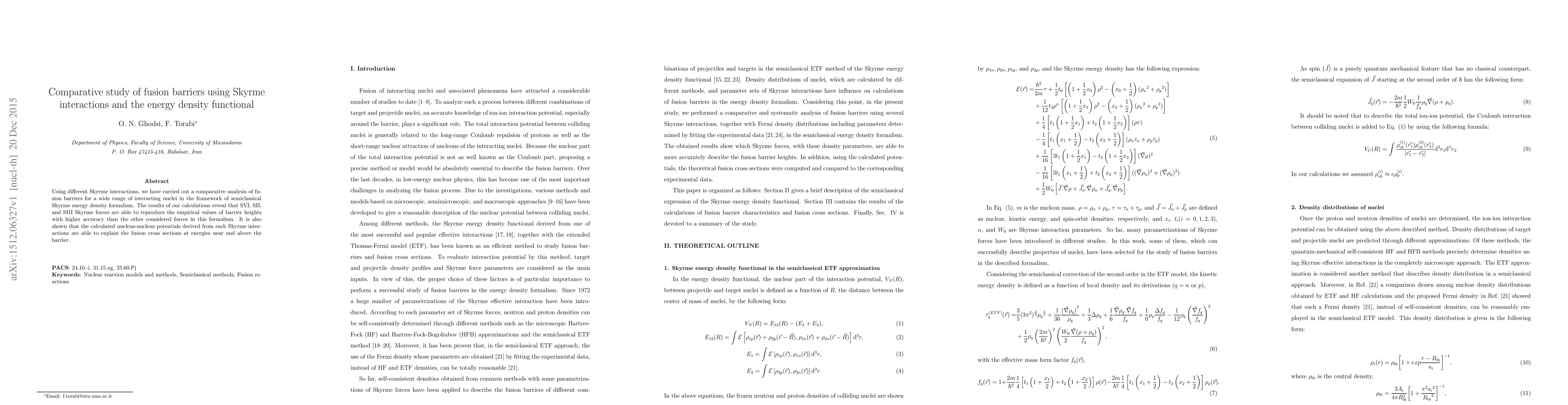 This study compares fusion barriers across various nuclei using different Skyrme interactions within the semiclassical Skyrme energy density formalism. The findings indicate that SVI, SII, and SIII Skyrme forces provide more accurate reproductions of empirical barrier heights and better explain fusion cross sections at energies near and above the barrier.