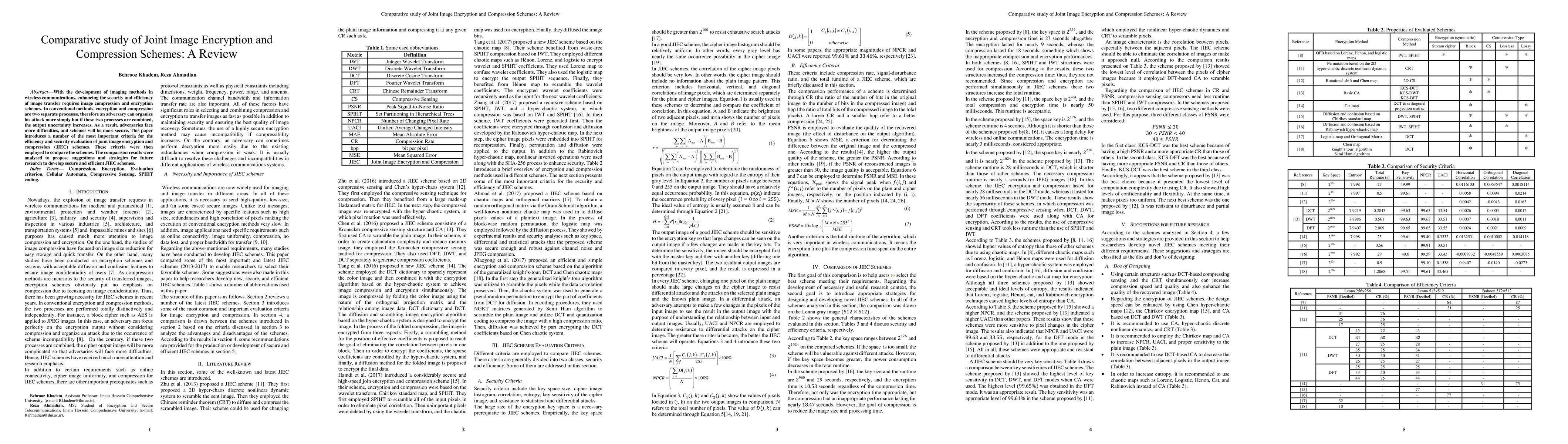 This paper reviews joint image encryption and compression (JIEC) schemes, evaluating their efficiency and security based on specific criteria. The comparative analysis suggests strategies for future research to enhance the security and efficiency of integrated image transfer methods.