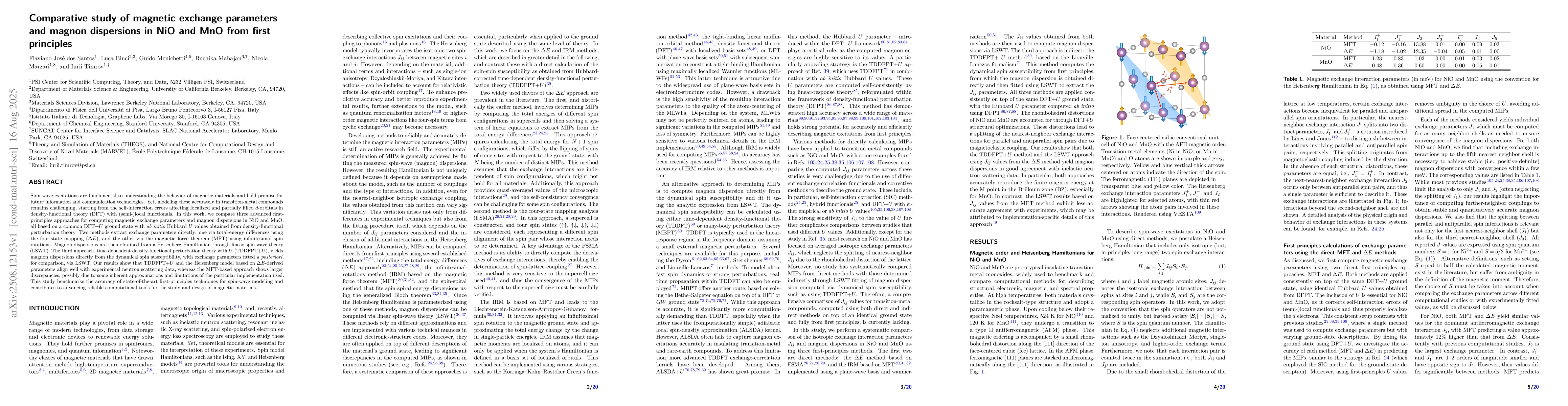 Spin-wave excitations are fundamental to understanding the behavior of magnetic materials and hold promise for future information and communication technologies. Yet, modeling these accurately in transition-metal compounds remains challenging, starting from the self-interaction errors affecting localized and partially filled $d$-orbitals in density-functional theory (DFT) with (semi-)local functionals. In this work, we compare three advanced first-principles approaches for computing magnetic exchange parameters and magnon dispersions in NiO and MnO, all based on a common DFT+$U$ ground state with ab initio Hubbard $U$ values obtained from density-functional perturbation theory. Two methods extract exchange parameters directly: one via total-energy differences using the four-state mapping ($\Delta E$), and the other via the magnetic force theorem (MFT) using infinitesimal spin rotations. Magnon dispersions are then obtained from a Heisenberg Hamiltonian through linear spin-wave theory (LSWT). The third approach, time-dependent density-functional perturbation theory with $U$ (TDDFPT+$U$), yields magnon dispersions directly from the dynamical spin susceptibility, with exchange parameters fitted a posteriori, for comparison, via LSWT. Our results show that TDDFPT+$U$ and the Heisenberg model based on $\Delta E$-derived parameters align well with experimental neutron scattering data, whereas the MFT-based approach shows larger discrepancies, possibly due to some inherent approximations and limitations of the particular implementation used. This study benchmarks the accuracy of state-of-the-art first-principles techniques for spin-wave modeling and contributes to advancing reliable computational tools for the study and design of magnetic materials.