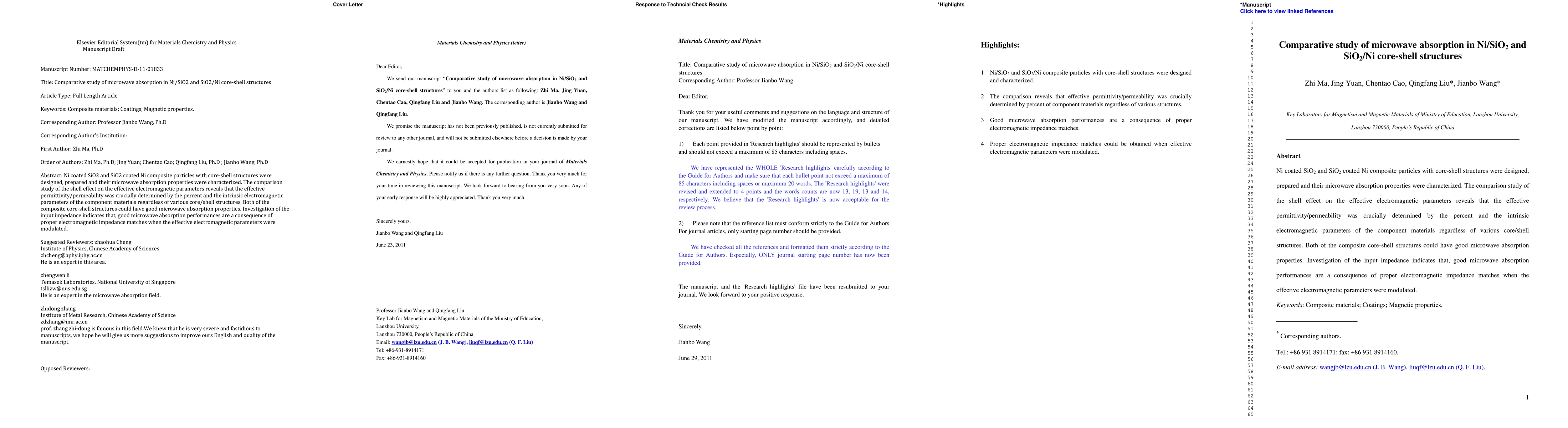 Ni coated SiO2 and SiO2 coated Ni composite particles with core-shell structures were designed, prepared, and their microwave absorption properties characterized.