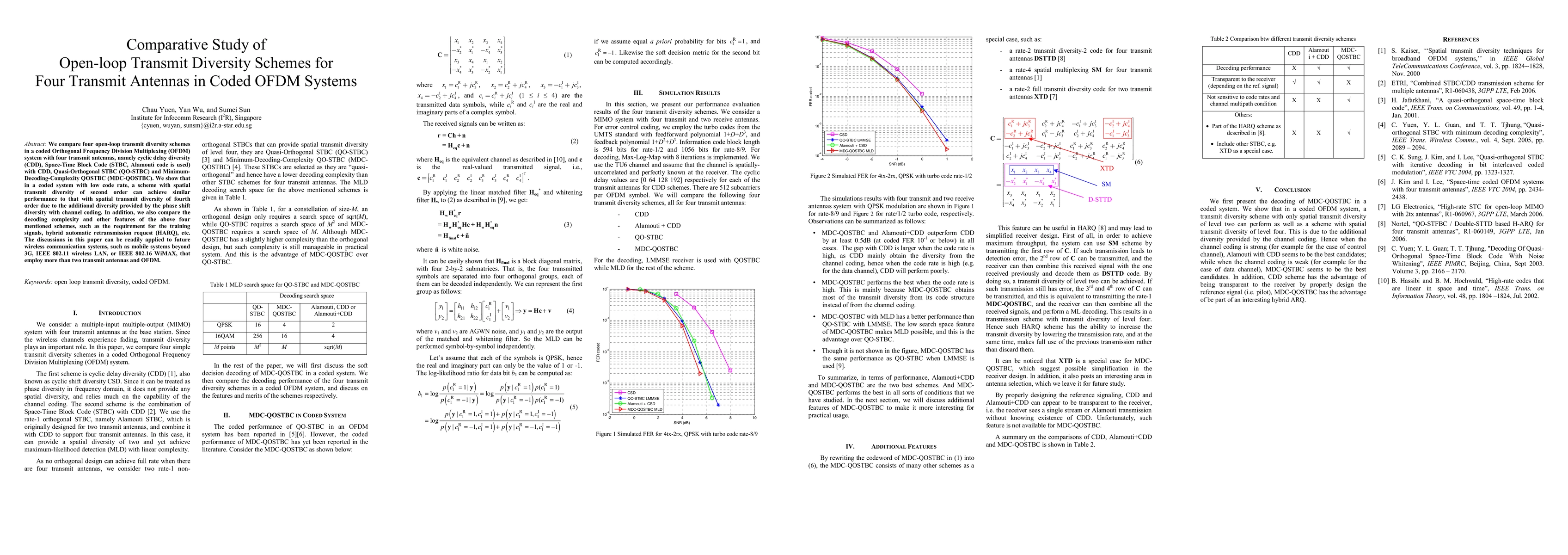 We compare four open-loop transmit diversity schemes in a coded Orthogonal Frequency Division Multiplexing (OFDM) system with four transmit antennas, namely cyclic delay diversity (CDD), Space-Time Block Code (STBC, Alamouti code is used) with CDD, Quasi-Orthogonal STBC (QO-STBC) and Minimum-Decoding-Complexity QOSTBC (MDC-QOSTBC). We show that in a coded system with low code rate, a scheme with spatial transmit diversity of second order can achieve similar performance to that with spatial transmit diversity of fourth order due to the additional diversity provided by the phase shift diversity with channel coding. In addition, we also compare the decoding complexity and other features of the above four mentioned schemes, such as the requirement for the training signals, hybrid automatic retransmission request (HARQ), etc. The discussions in this paper can be readily applied to future wireless communication systems, such as mobile systems beyond 3G, IEEE 802.11 wireless LAN, or IEEE 802.16 WiMAX, that employ more than two transmit antennas and OFDM.
