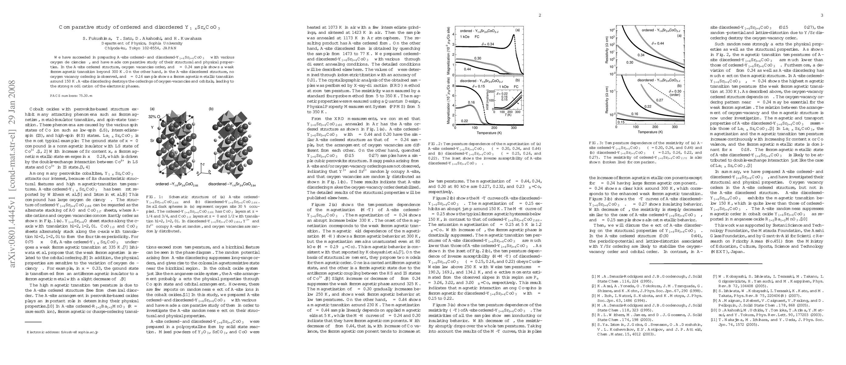 We have succeeded in preparing A-site ordered- and disordered-Y1/4Sr3/4CoO3-d with various oxygen deficiencies delta, and have made comparative study of their structural and physical properties. In the A-site ordered structure, oxygen vacancies order, and d = 0.34 sample shows a weak ferromagnetic transition beyond 300 K. On the other hand, in the A-site disordered structure, no oxygen vacancy ordering is observed, and d = 0.16 sample shows a ferromagnetic metallic transition around 150 K. A-site disordering destroys the orderings of oxygen-vacancies and orbitals, leading to the strong modification of the electronic phases.