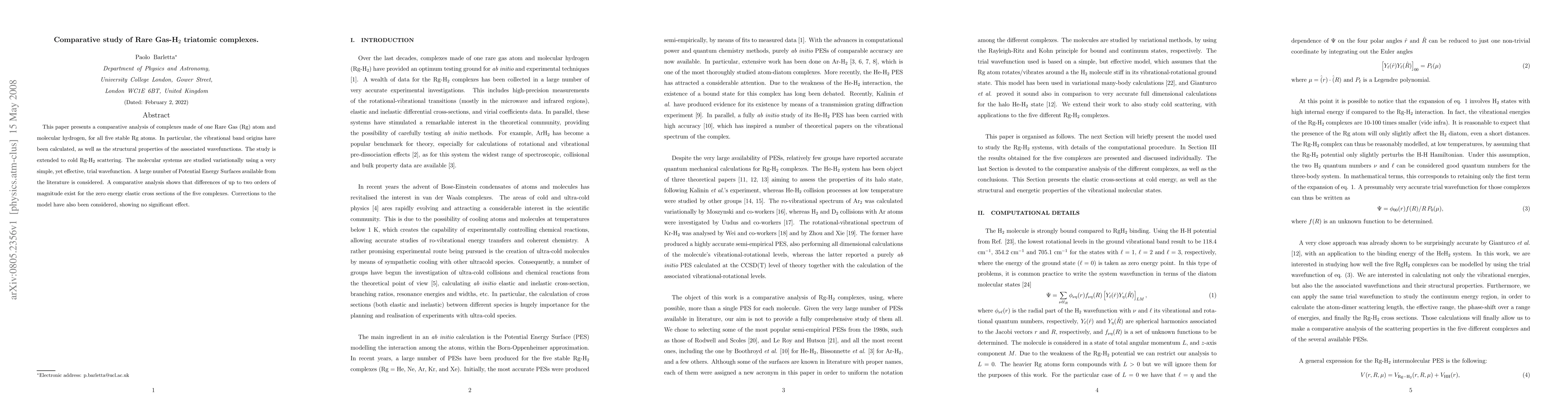This study compares rare gas-hydrogen triatomic complexes, finding significant differences in zero-energy elastic cross sections between the five stable rare gases, with variations up to two orders of magnitude.