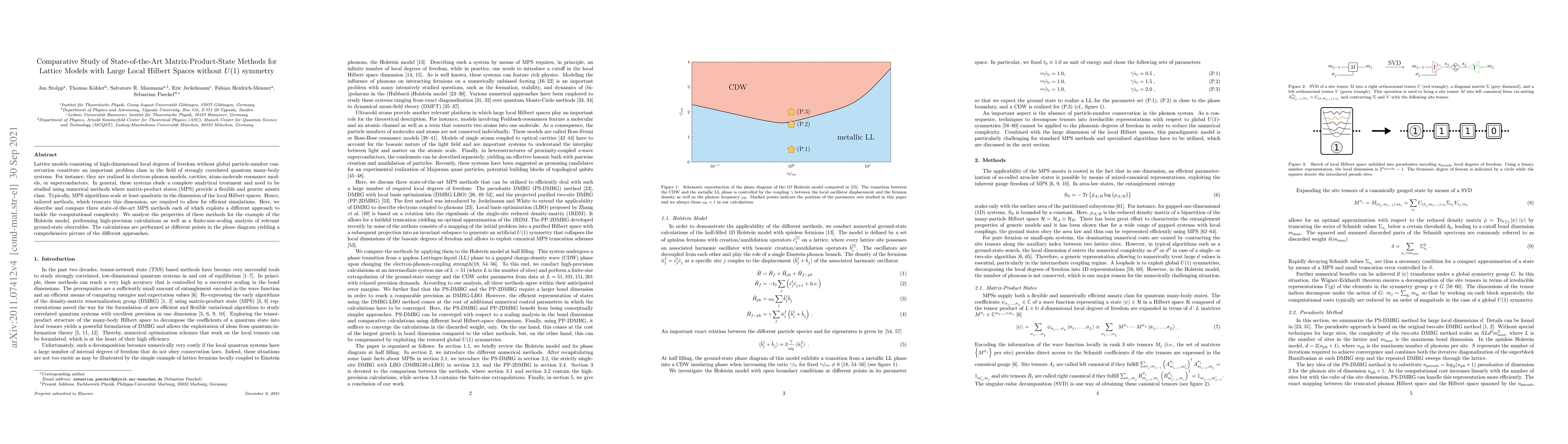 Lattice models consisting of high-dimensional local degrees of freedom without global particle-number conservation constitute an important problem class in the field of strongly correlated quantum many-body systems. For instance, they are realized in electron-phonon models, cavities, atom-molecule resonance models, or superconductors. In general, these systems elude a complete analytical treatment and need to be studied using numerical methods where matrix-product states (MPS) provide a flexible and generic ansatz class. Typically, MPS algorithms scale at least quadratic in the dimension of the local Hilbert spaces. Hence, tailored methods, which truncate this dimension, are required to allow for efficient simulations. Here, we describe and compare three state-of-the-art MPS methods each of which exploits a different approach to tackle the computational complexity. We analyze the properties of these methods for the example of the Holstein model, performing high-precision calculations as well as a finite-size-scaling analysis of relevant ground-state obervables. The calculations are performed at different points in the phase diagram yielding a comprehensive picture of the different approaches.