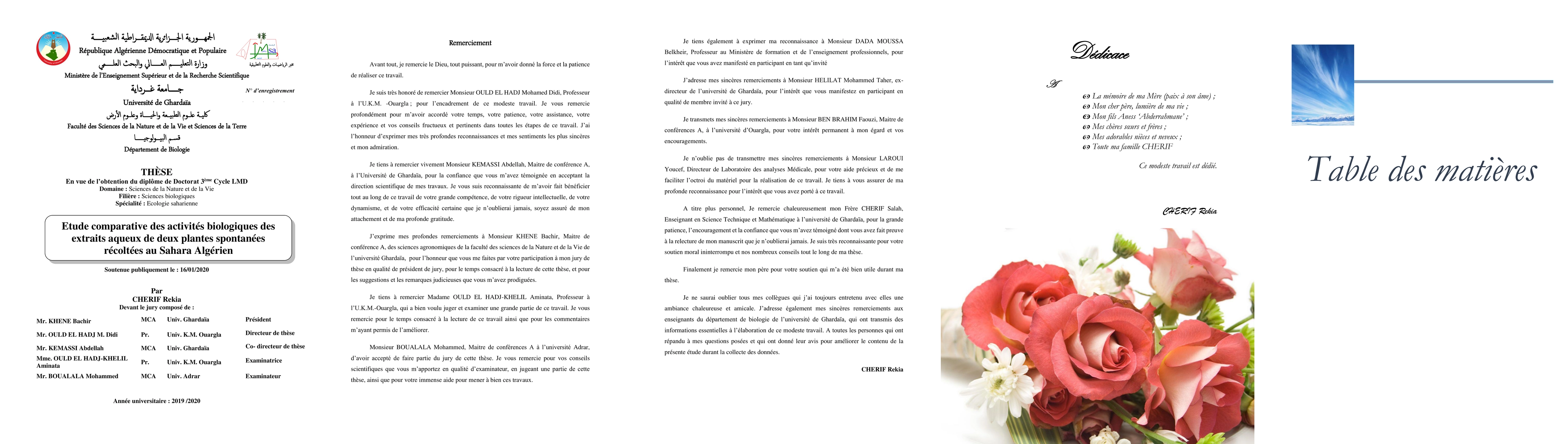 This study investigates the insecticidal and herbicidal effects of leaf extracts from two plants in the Algerian Sahara, finding that one plant shows a higher efficacy rate against pests, while both plants exhibit allelopathic potentials to inhibit weed growth.
