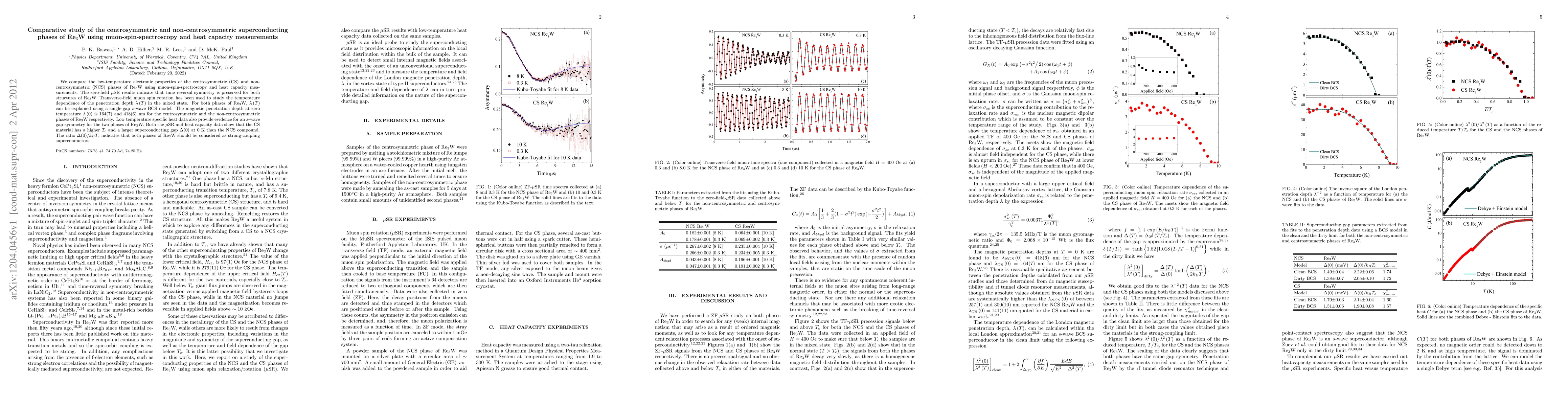 We compare the low-temperature electronic properties of the centrosymmetric (CS) and non-centrosymmetric (NCS) phases of Re3W using muon-spin spectroscopy and heat capacity measurements. The zero-field muSR results indicate that time-reversal symmetry is preserved for both structures of Re3W. Transverse-field muon spin rotation has been used to study the temperature dependence of the penetration depth lambda(T) in the mixed state. For both phases of Re3W, lambda(T) can be explained using a single-gap s-wave BCS model. The magnetic penetration depth at zero temperature, lambda(0), is 164(7) and 418(6) nm for the centrosymmetric and the non-centrosymmetric phases of Re3W respectively. Low-temperature specific heat data also provide evidence for an s-wave gap-symmetry for the two phases of Re3W. Both the muSR and heat capacity data show that the CS material has a higher Tc and a larger superconducting gap Delta(0) at 0 K than the NCS compound. The ratio Delta(0)/kBTc indicates that both phases of Re3W should be considered as strong-coupling superconductors.