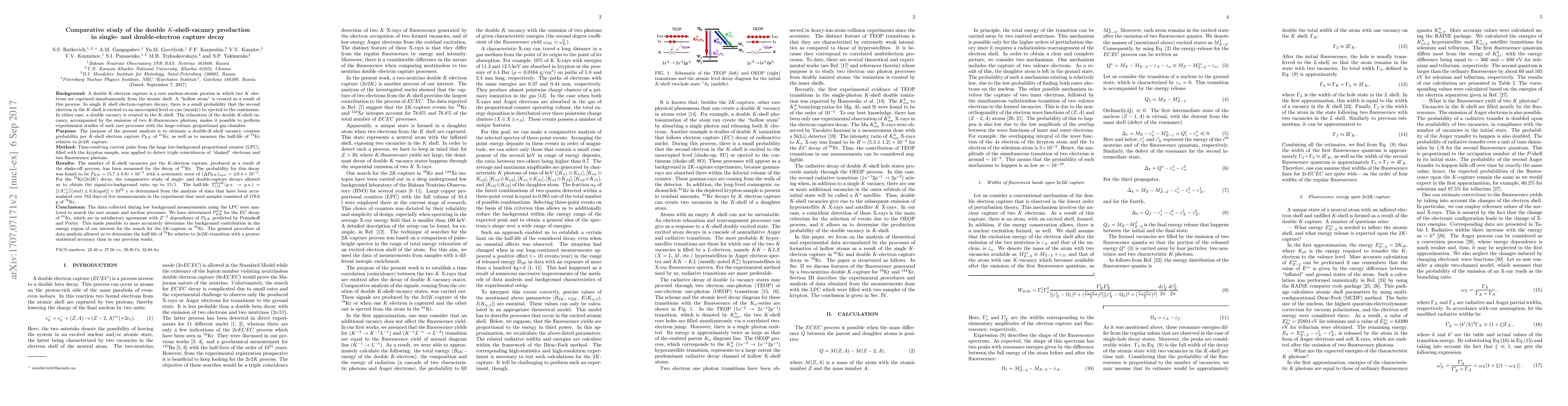 This study compared the production of double K-shell vacancies in electron capture decays of krypton isotopes, detecting characteristic X-rays and Auger electrons to measure rare decay probabilities. The findings include a new estimate for the double-electron capture half-life of $^{78}$Kr, providing insights into nuclear decay processes relevant for understanding fundamental physics.