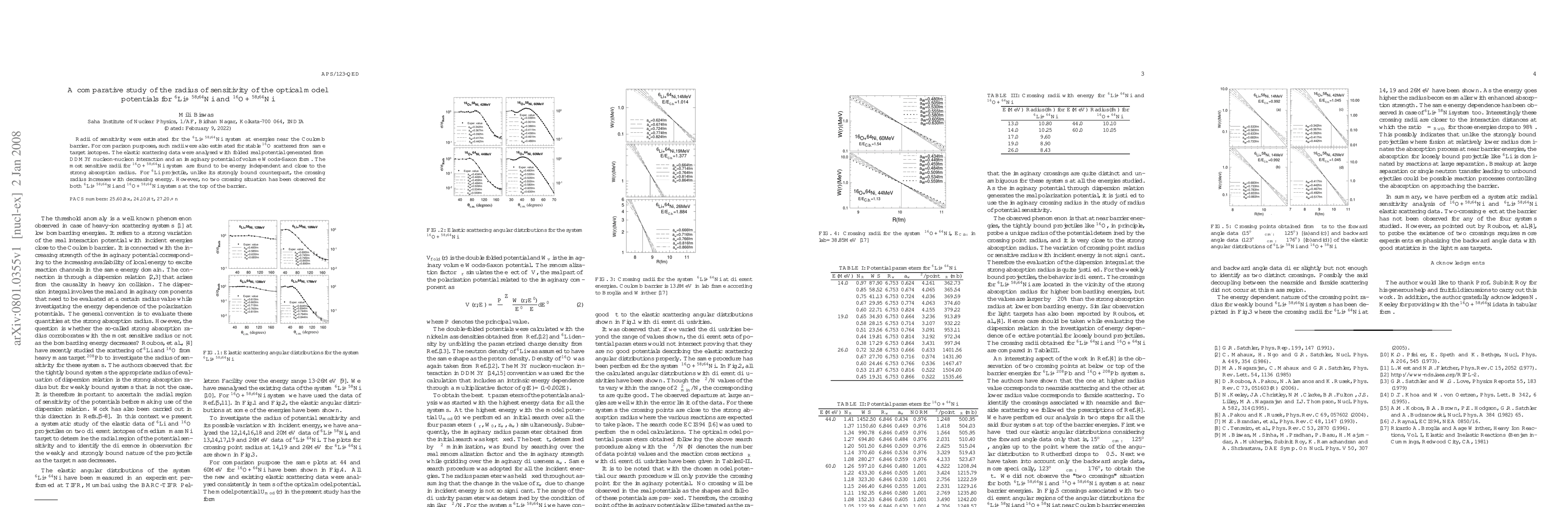 This study compares the radius of sensitivity of optical model potentials for $^6$Li+$^{58,64}$Ni and $^{16}$O+$^{58,64}$Ni systems. The research finds that for $^{16}$O, sensitive radii are energy-independent and near the strong absorption radius. In contrast, $^{6}$Li's crossing radius increases with lower energy. Neither system shows a double-crossing at the barrier's top.